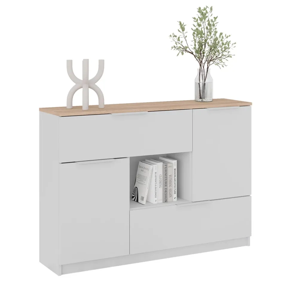 - MATERIAL: Das Sideboard besteht aus pflegeleichter, melaminharzbeschichteter 16 mm Spanplatte