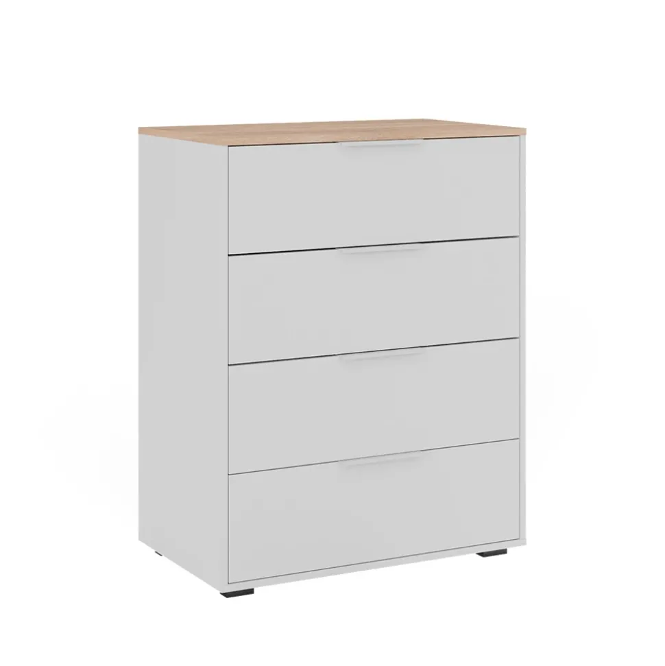 Die Kommode Betti bietet nicht nur praktischen Stauraum, sondern auch ein funktionelles und zeitloses Design für Ihr Schlafzimmer. Mit ihren 4 geräumigen Schubladen können Sie all Ihre Kleidung und Accessoires ordentlich verstauen und haben alles schnell zur Hand. Dank des modernen Aussehens der Kommode lässt sie sich zudem wunderbar mit anderen Möbelstücken kombinieren und gibt Ihrem Zuhause einen frischen Look. Mit der Kommode Betti können Sie Ihren vier Wänden nicht nur mehr Ordnung, sondern auch mehr Stil verleihen. Holen Sie sich jetzt dieses praktische Möbelstück und bringen Sie mehr Ordnung in Ihr Schlafzimmer!