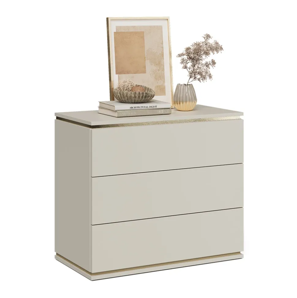 Die Möbelserie Linette umfasst eine elegante Nachtkommode, die Funktionalität und zeitloses Design vereint