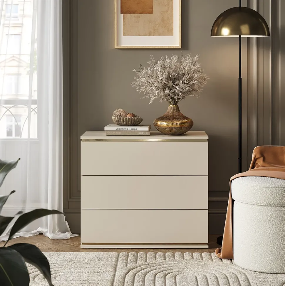 - Die drei Schubladen öffnen dank Push-to-Open grifflos per Fingertipp – der Kommodenschrank setzt auf cleanes Design und passt perfekt in jedes Zimmer.