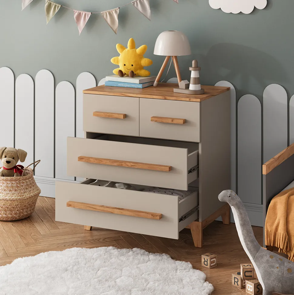 - Gestalten Sie Ihr Zuhause ordentlich und stilvoll mit diesem praktischen Kommodenschrank. Die zwei kleinen und zwei großen Schubladen bieten optimalen Stauraum für Hygieneartikel und Spielzeug.