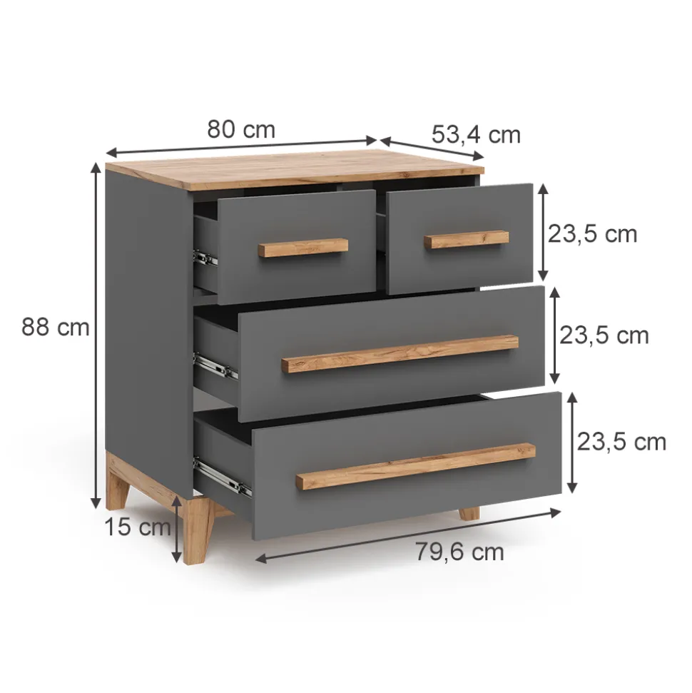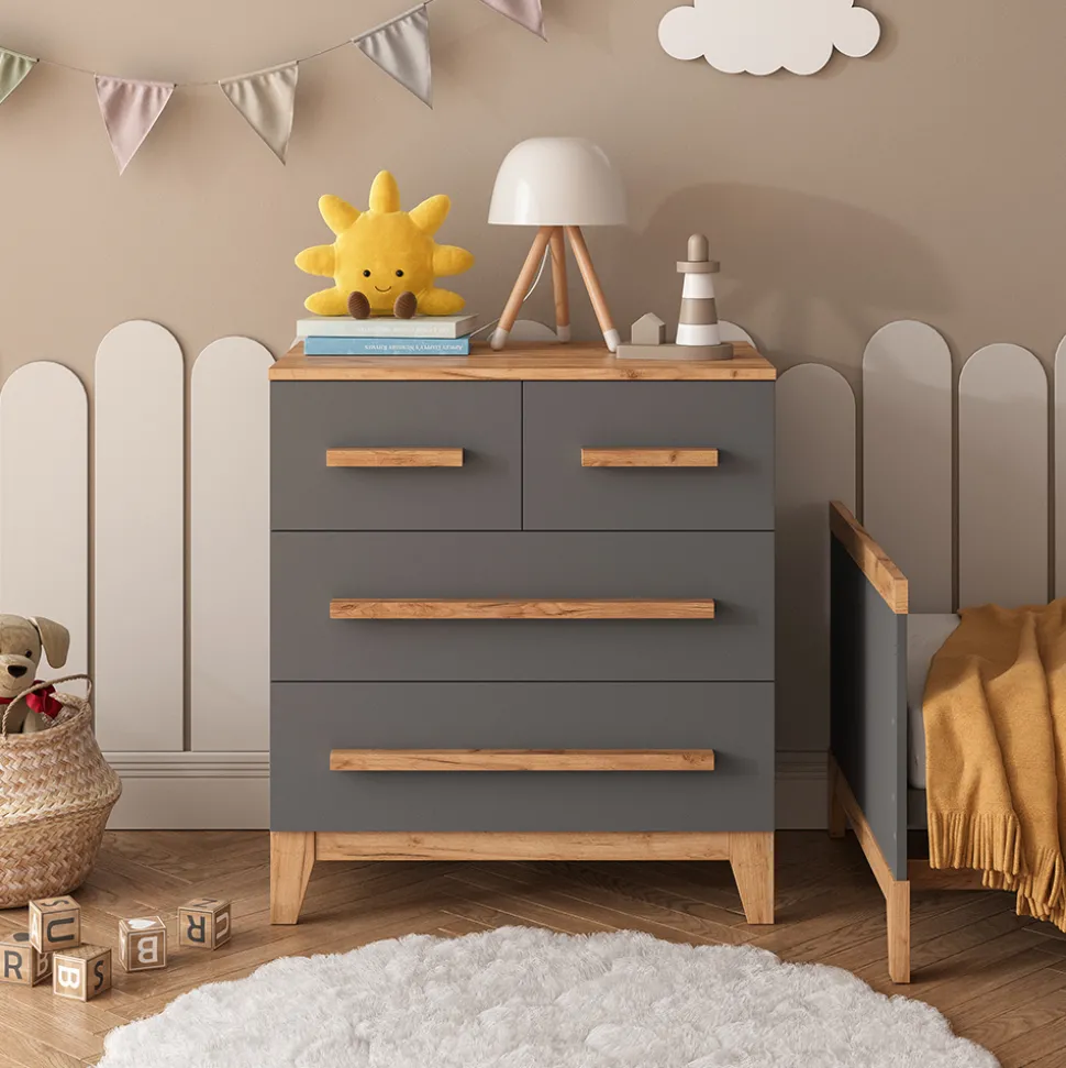 - Gestalten Sie Ihr Zuhause ordentlich und stilvoll mit diesem praktischen Kommodenschrank. Die zwei kleinen und zwei großen Schubladen bieten optimalen Stauraum für Hygieneartikel und Spielzeug.