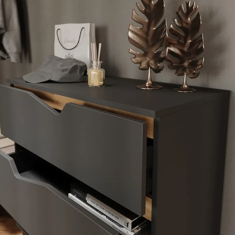 Die Kommode Marelle ist nicht nur ein praktisches Möbelstück für Ihr Zuhause, sondern auch ein echter Hingucker. Mit ihrem eleganten Design und den drei geräumigen Schubladen bietet sie reichlich Stauraum für Ihre Kleidung, Accessoires oder andere Dinge, die Sie verstauen möchten. Ob im Wohn- oder Schlafzimmer, die Marelle-Kommode fügt sich harmonisch in jeden Raum ein und sorgt für Ordnung und Stil. Teil der Marelle-Serie, gibt es auch weitere Varianten dieses Schubladenschranks, um Ihr Zuhause komplett zu machen. Gönnen Sie sich dieses praktische und schöne Möbelstück und bringen Sie ein Stück Eleganz in Ihr Zuhause.