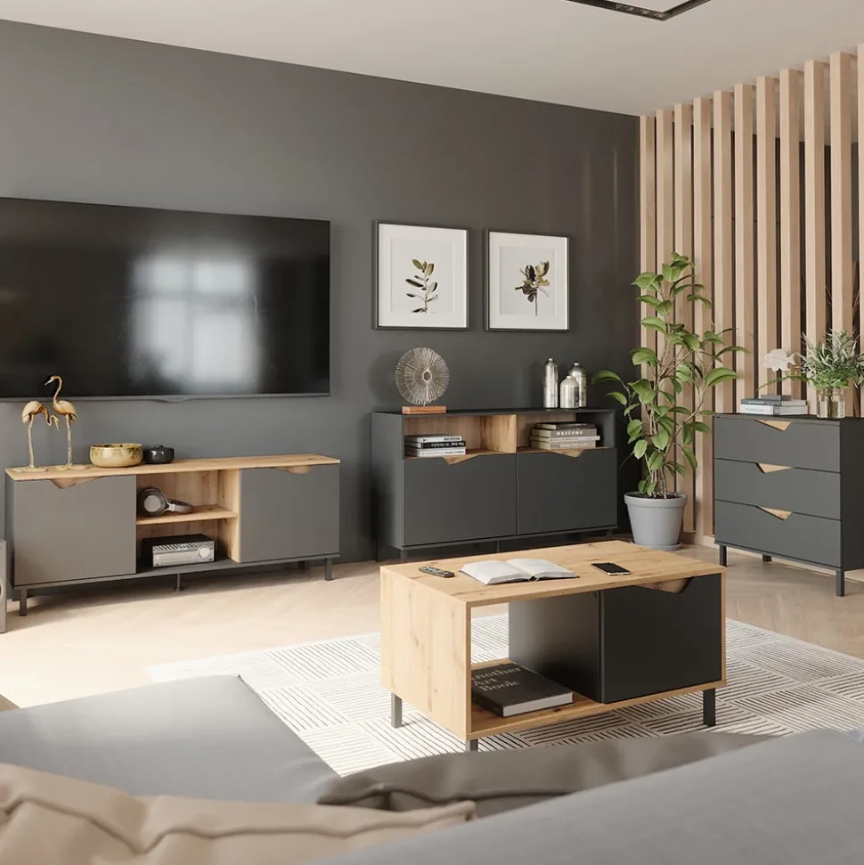 - Die Anrichte „Marelle“ ist eine gute Entscheidung für jede Wohnung, dank ihres stilvollen Aussehens und ihrer universellen Passform.