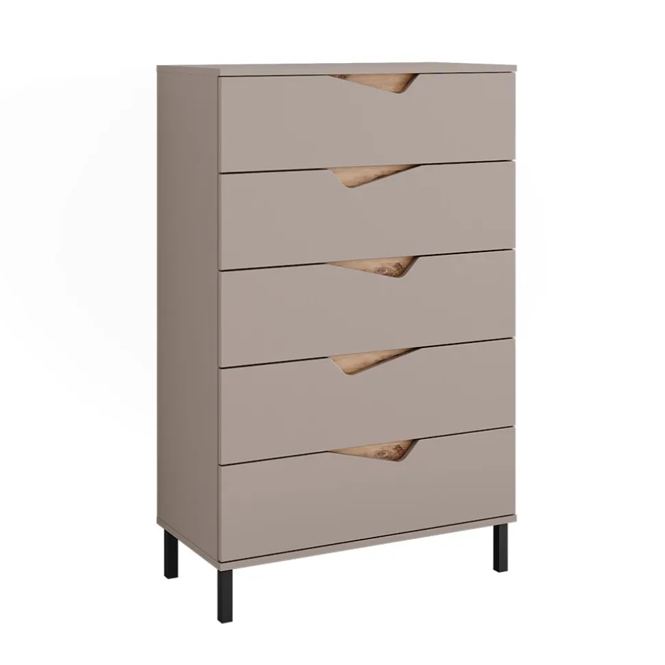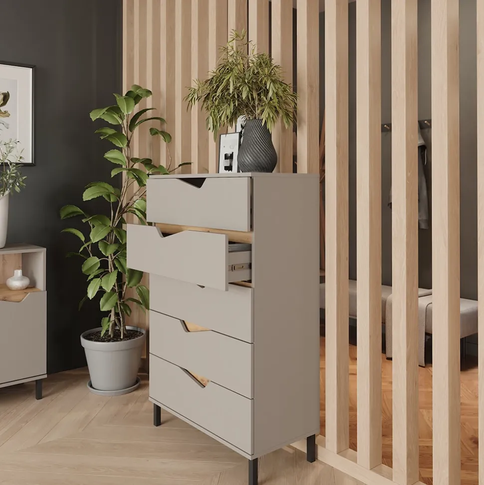 Die Kommode Marelle ist nicht nur ein praktisches Möbelstück für Ihr Zuhause, sondern auch ein echter Hingucker. Mit ihrem eleganten Design und den 5 geräumigen Schubladen bietet sie reichlich Stauraum für Ihre Kleidung, Accessoires oder andere Dinge, die Sie verstauen möchten. Ob im Wohn- oder Schlafzimmer, die Marelle-Kommode fügt sich harmonisch in jeden Raum ein und sorgt für Ordnung und Stil. Teil der Marelle-Serie, gibt es auch weitere Varianten dieses Schubladenschranks, um Ihr Zuhause komplett zu machen. Gönnen Sie sich dieses praktische und schöne Möbelstück und bringen Sie ein Stück Eleganz in Ihr Zuhause.