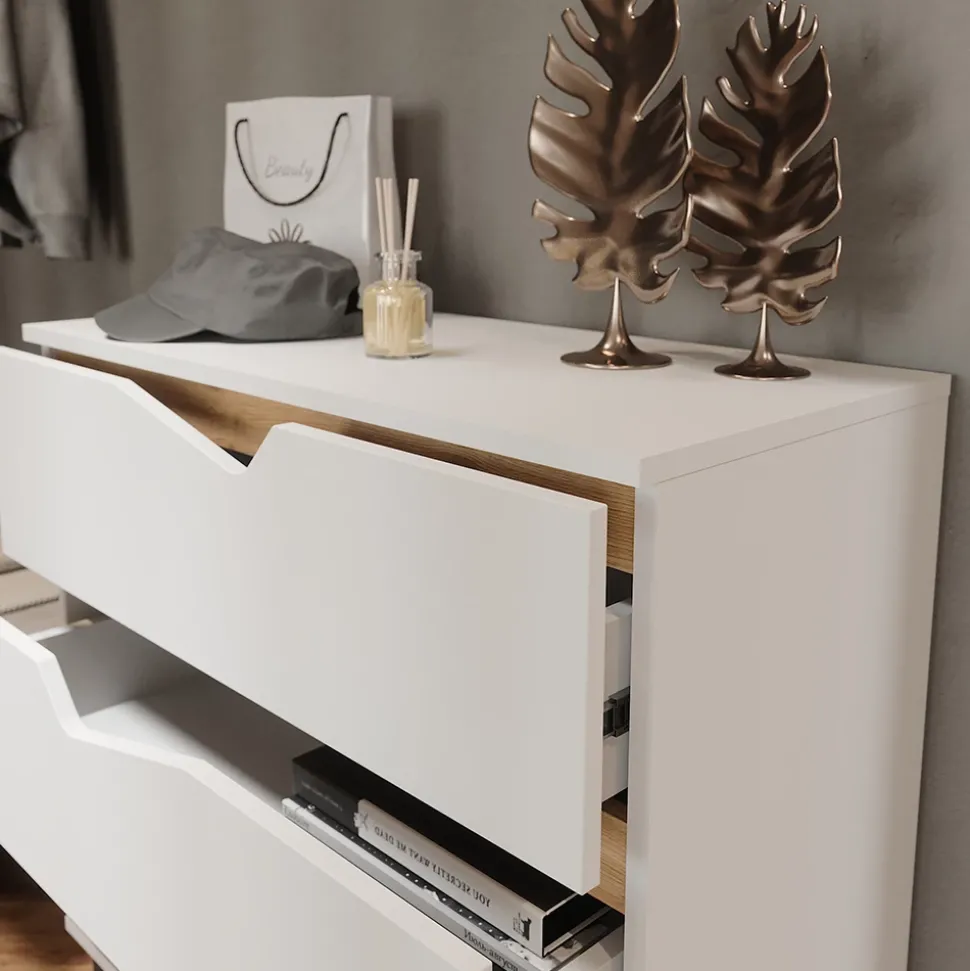 Die Kommode Marelle ist nicht nur ein praktisches Möbelstück für Ihr Zuhause, sondern auch ein echter Hingucker. Mit ihrem eleganten Design und den drei geräumigen Schubladen bietet sie reichlich Stauraum für Ihre Kleidung, Accessoires oder andere Dinge, die Sie verstauen möchten. Ob im Wohn- oder Schlafzimmer, die Marelle-Kommode fügt sich harmonisch in jeden Raum ein und sorgt für Ordnung und Stil. Teil der Marelle-Serie, gibt es auch weitere Varianten dieses Schubladenschranks, um Ihr Zuhause komplett zu machen. Gönnen Sie sich dieses praktische und schöne Möbelstück und bringen Sie ein Stück Eleganz in Ihr Zuhause.