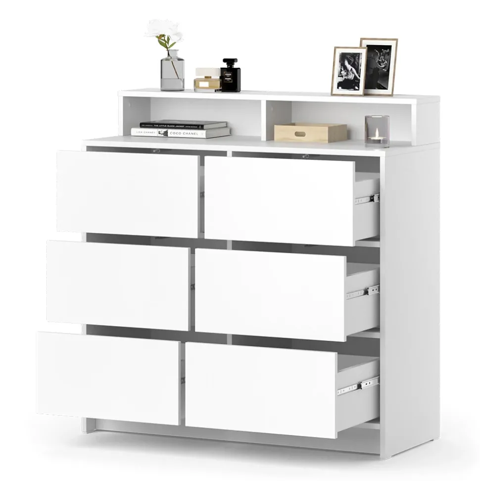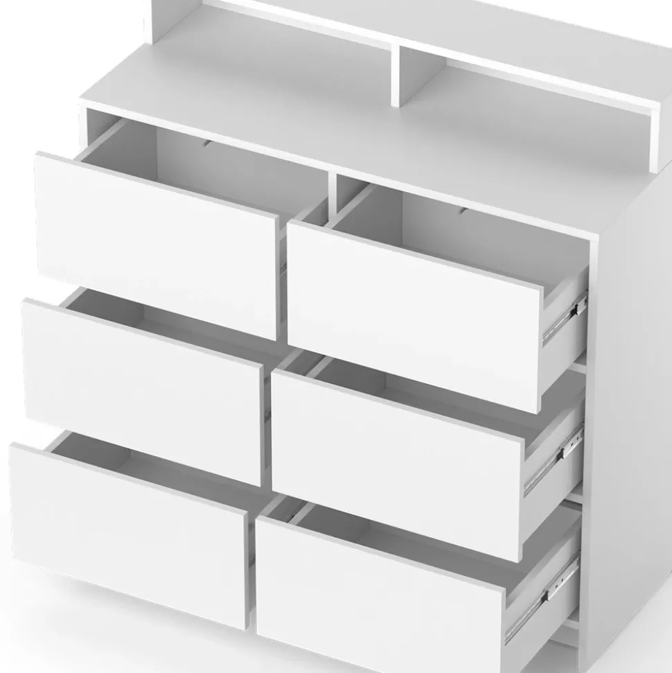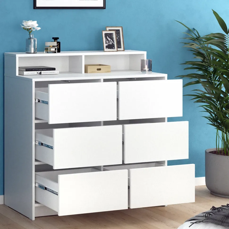 - Die Kommode Naara ist das perfekte Highboard fürs Schlafzimmer. Mit 6 Schubladen und Fächern, Push-to-open-Funktion und modernem Design ist sie eine ideale Anrichte.