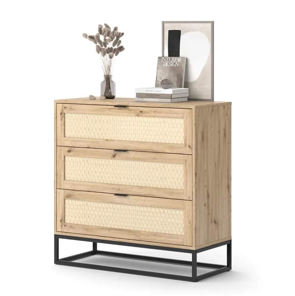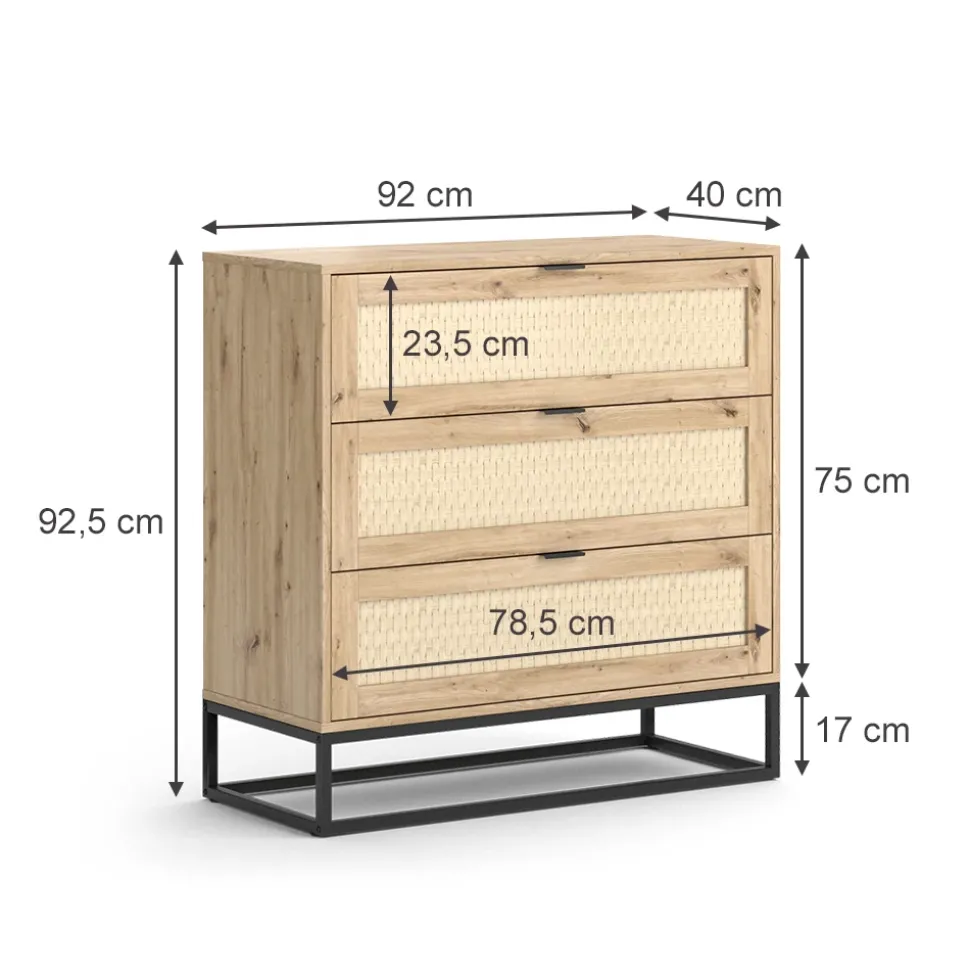 Die Kommode Natal ist ein zeitgemäßer Wohnzimmerschrank, der Ihrem Wohnraum Charakter verleiht. Durch seinen modernen Stil passt er perfekt in jedes Ambiente und zieht alle Blicke auf sich. Die Kommode bietet, dank 3er Schubladen, reichlich Stauraum und ist Teil einer Serie mit weiteren Optionen, um Ihre Einrichtung zu vervollständigen. Als Kommodenschrank ist Natal ein wahres Multitalent. Verleihen Sie Ihrem Zuhause das besondere Etwas mit der Kommode Natal.