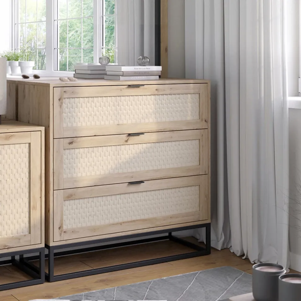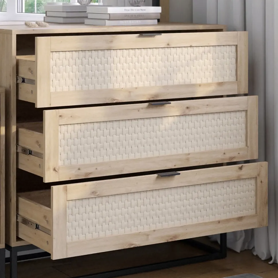 - Die Anrichte verfügt über drei geräumige Schubladen und bietet viel Stauraum. Sie ist Teil einer Serie, die weitere Optionen umfasst.