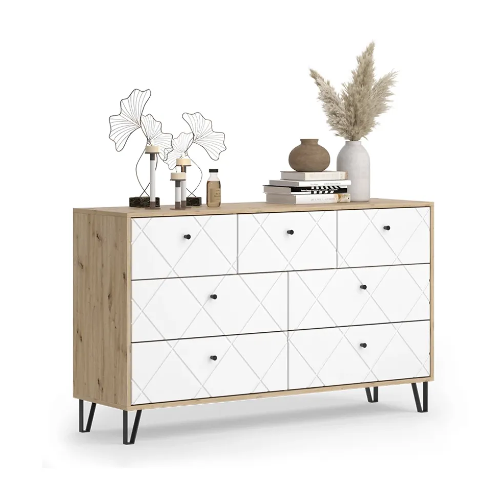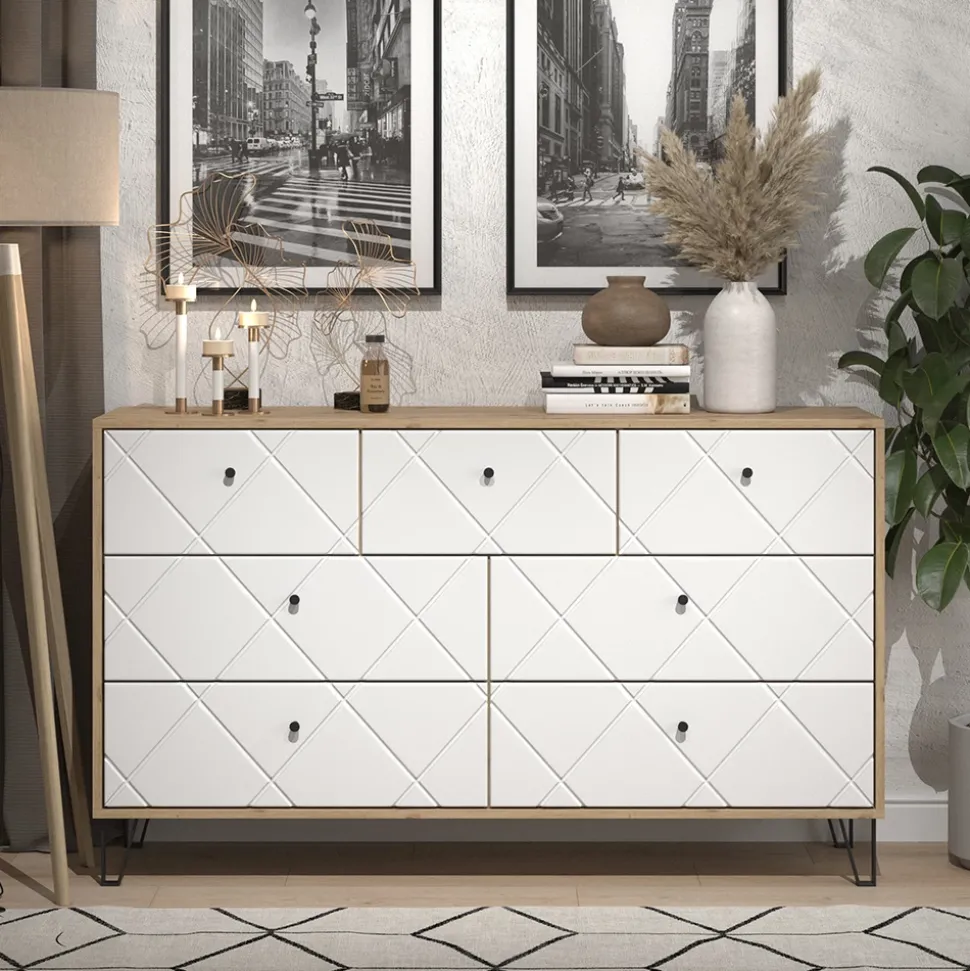 - Praktische Anrichte mit 7 Schubladen – viel Stauraum für Kleidung, Accessoires oder Unterlagen, sorgt für Ordnung und Struktur im Wohnbereich.