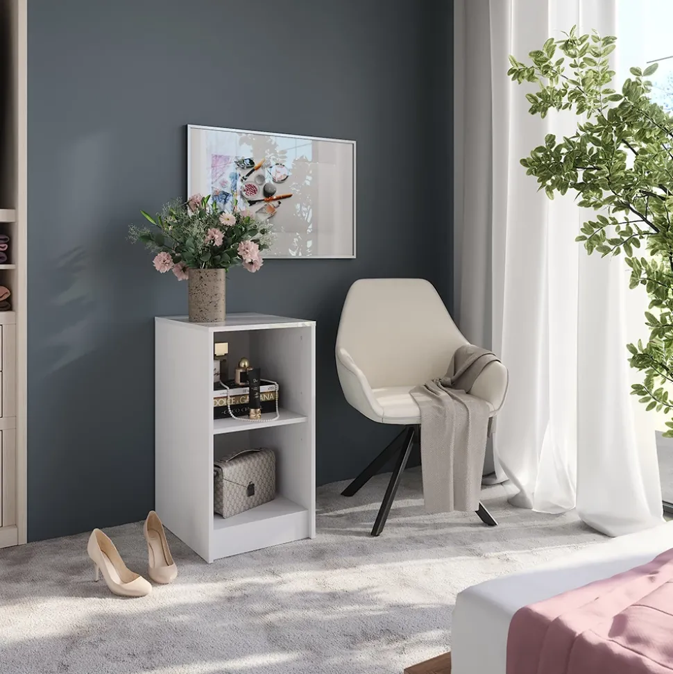 - Dank der kompakten Größe passt es in jede Ecke und bietet trotzdem viel Stauraum für deine Sachen.