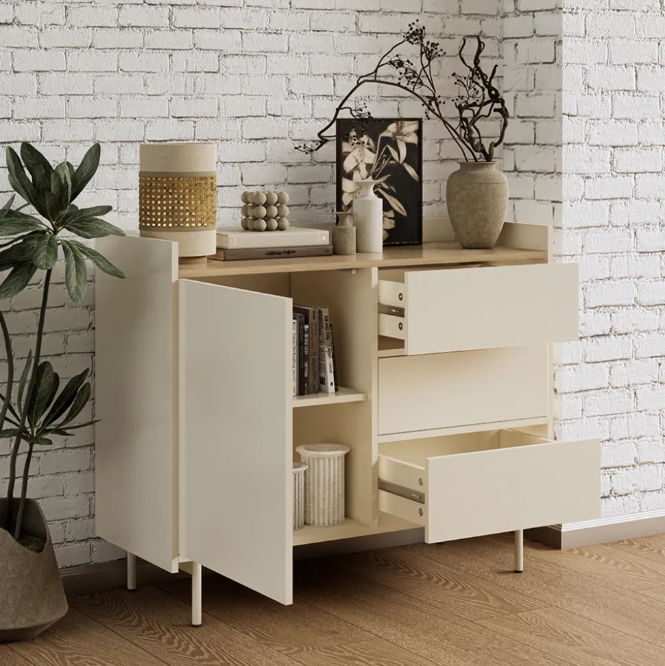 - Der moderne Kommodenschrank verfügt über 2 Einlegeböden und Türen, die praktischen Stauraum bieten und ein stilvolles Design in jeden Raum bringen. Ideal für ein aufgeräumtes Zuhause.