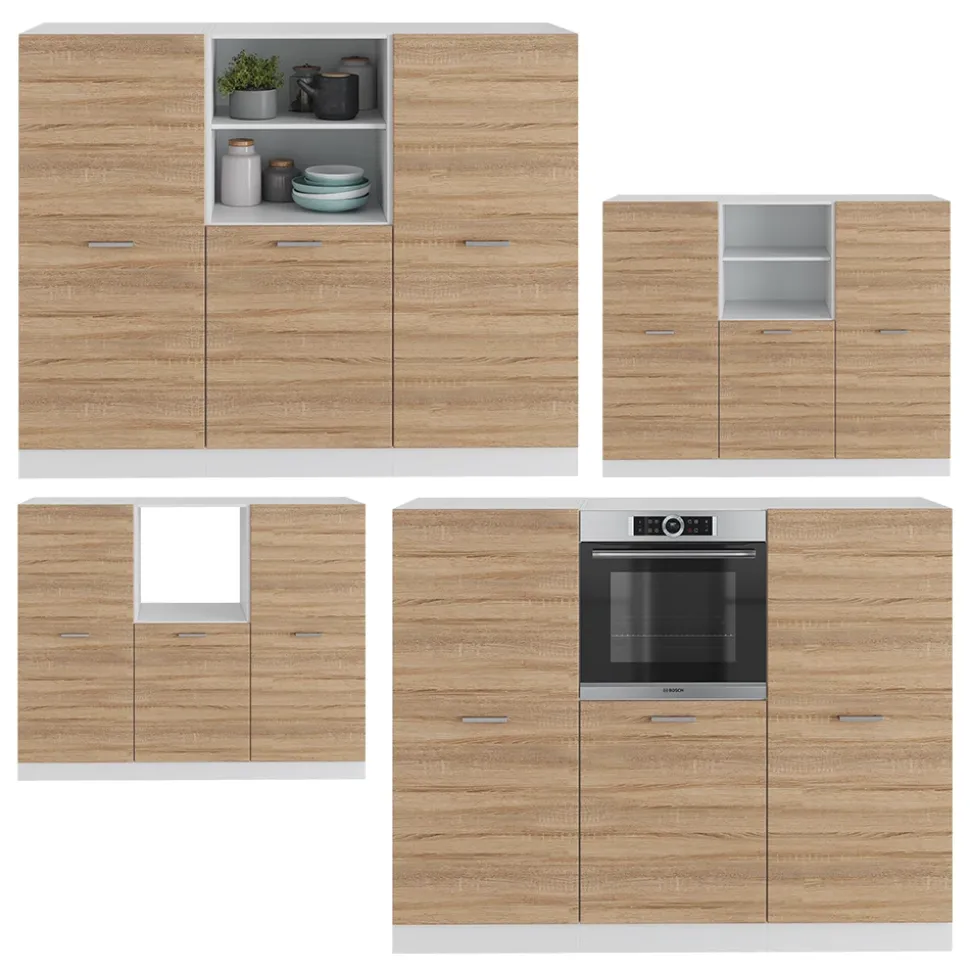 LIEFERUMFANG: Küchenblock ohne Arbeitsplatte, Montagematerial, Montageanleitung (Sofern nicht anders angegeben, gehören Elektrogeräte und Dekorationen nicht zum Lieferumfang)