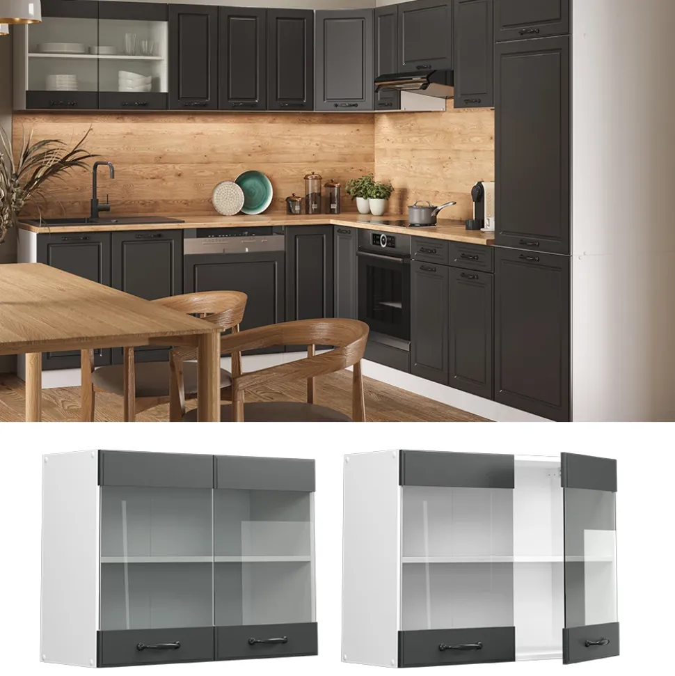 Der R-Line Küchenglasschrank ist die perfekte Lösung für Ihre Küche. Die Hängevitrine, der Geschirrschrank und Küchen Glasschrank sind hängend und somit platzsparend. Die Serie ist flexibel und kann individuell konfiguriert werden. Sie können das Modul ganz nach Belieben umstellen und bei Bedarf weitere Module hinzufügen. Diese Komplettlösung lässt Ihren Raum nicht nur ordentlich und aufgeräumt aussehen, sondern ist auch ein wahrer Hingucker. Schenken Sie Ihrer Küche das perfekte Design und die Funktionalität, die sie verdient. Wählen Sie jetzt den Küchenschrank Glas, R-Line, für Ihre Küchenrenovierung!
