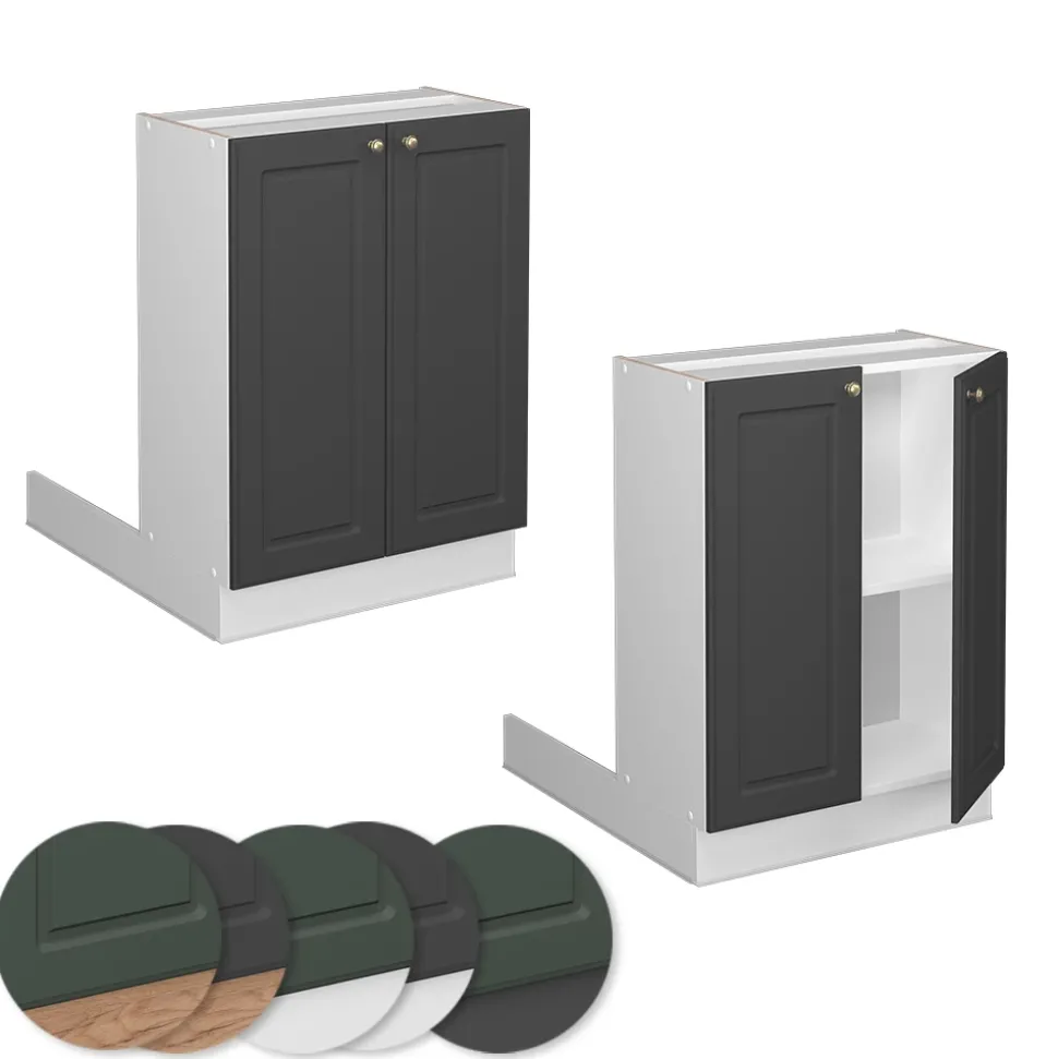 - MATERIAL: Die freistehenden Küchenmöbel besteht aus pflegeleichter Spanplatte 16 mm, mit einer Melaminharzbeschichtung. Die Fronten sind aus hochwertigem MDF hergestellt