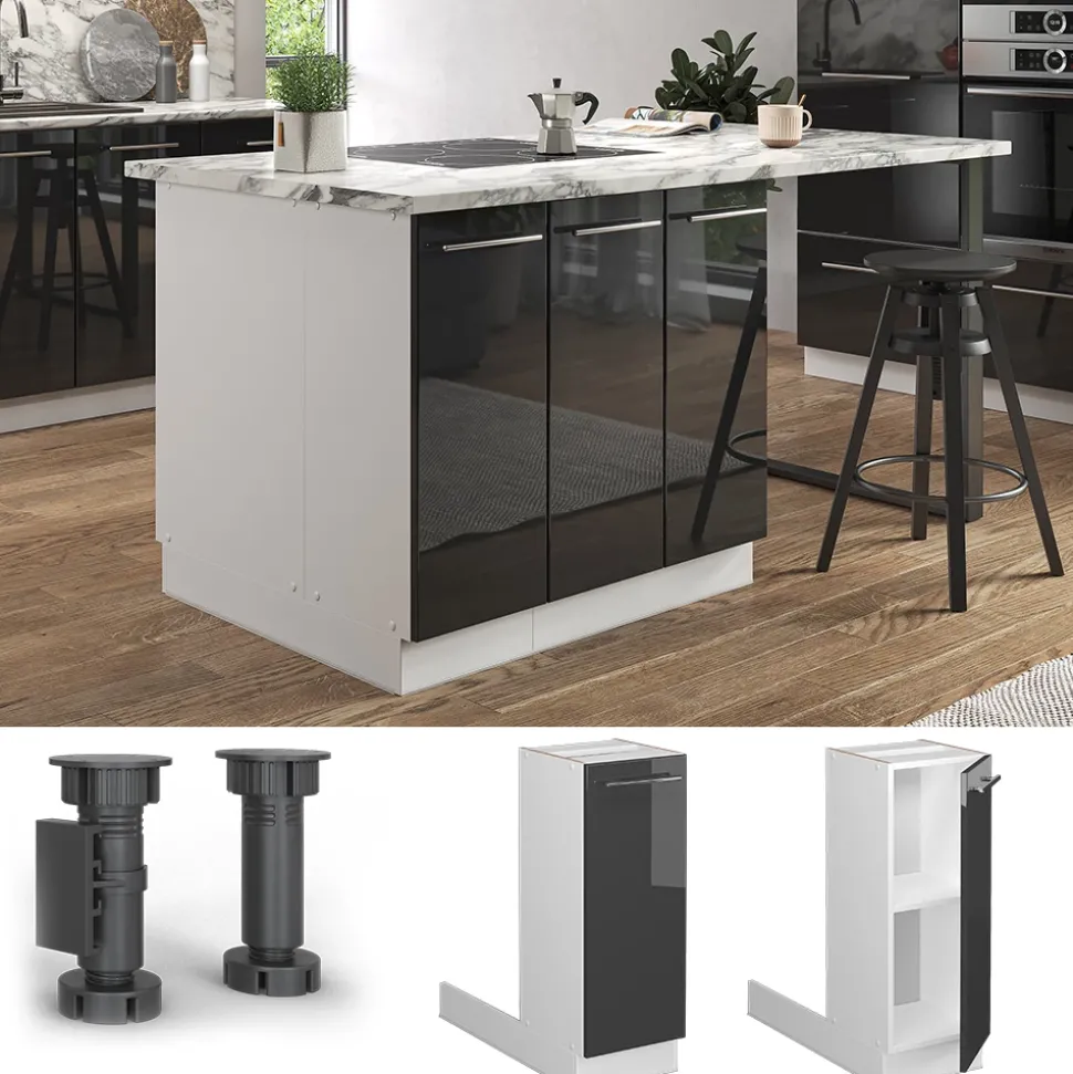 Die Fame-Line Kücheninsel ohne Arbeitsplatte ist ein absoluter Hingucker in jeder Küche. Das freistehende Möbelstück bietet nicht nur zusätzlichen Stauraum, sondern auch eine praktische Kochinsel. Die MDF-Fronten und Soft-Close-Scharniere sorgen für ein langlebiges und hochwertiges Erscheinungsbild. Die Serie ist in verschiedenen Konfigurationen erhältlich und kann ganz nach Belieben umgestaltet werden. Zusätzliche Module können jederzeit bezogen werden, um die Kücheninsel zu erweitern. Mit der Fame-Line Kücheninsel wird die Küche zu einem einladenden und funktionalen Raum. Gönnen Sie sich dieses Schmuckstück für Ihre Küche und erleben Sie die Freude am Kochen und Leben.