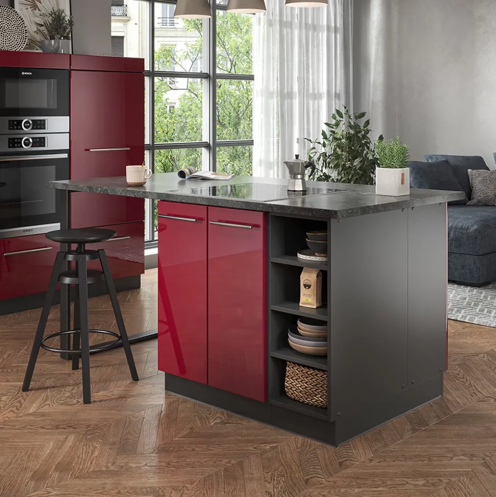 Mit der Fame-Line Kücheninsel setzen Sie ein Statement in Ihrer Küche. Der freistehende Küchenschrank bietet ausreichend Stauraum für alle Utensilien, die Sie zum Kochen benötigen, und macht Ihre Kochinsel zum Blickfang in jedem Raum. Die MDF-Fronten und Soft-Close-Scharniere sorgen dabei für eine hochwertige Optik und ein angenehmes Handling. Dabei ist die Konfiguration der Fame-Line Kücheninsel ganz nach Ihrem Geschmack anpassbar und lässt sich immer wieder neu zusammensetzen. Mit zusätzlichen Modulen können Sie Ihrer Kochinsel noch mehr Funktionen hinzufügen und Ihre Küche so zu einem Ort machen, an dem das Kochen zum Vergnügen wird.