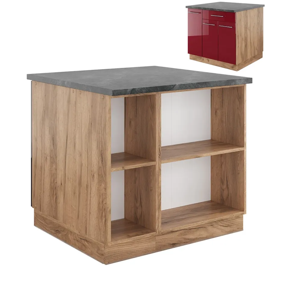 - MAßE: Der Insel-Küchenschrank hat eine Breite von 90 cm, eine Höhe von 82 cm und eine Tiefe von 82 cm. Alle detaillierten Größen sind auf den Fotos angegeben.