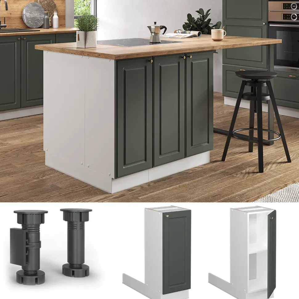 - MATERIAL: Die freistehenden Küchenmöbel besteht aus pflegeleichter Spanplatte 16 mm, mit einer Melaminharzbeschichtung. Die Fronten sind aus hochwertigem MDF hergestellt