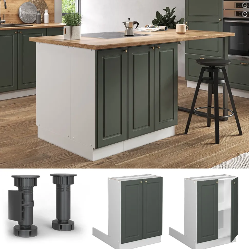 Die Fame-Line Kücheninsel ohne Arbeitsplatte ist ein echtes Highlight für jede Küche. Die Freistehende Kochinsel bietet viel Stauraum und Platz zum Zubereiten von Speisen. Mit dieser Kücheninsel können Sie Ihrer Kreativität beim Kochen freien Lauf lassen. Dank der MDF-Fronten und Soft-Close-Scharniere ist sie nicht nur robust, sondern auch besonders langlebig. Die verschiedenen Konfigurationen und zusätzlichen Module machen die Kücheninsel zu einem flexiblen und individuell anpassbaren Küchenmöbelstück. Gestalten Sie Ihre Küche nach Ihren Wünschen und Bedürfnissen und kreieren Sie ein einzigartiges Ambiente. Investieren Sie in Qualität und Innovation mit der Fame-Line Kücheninsel.