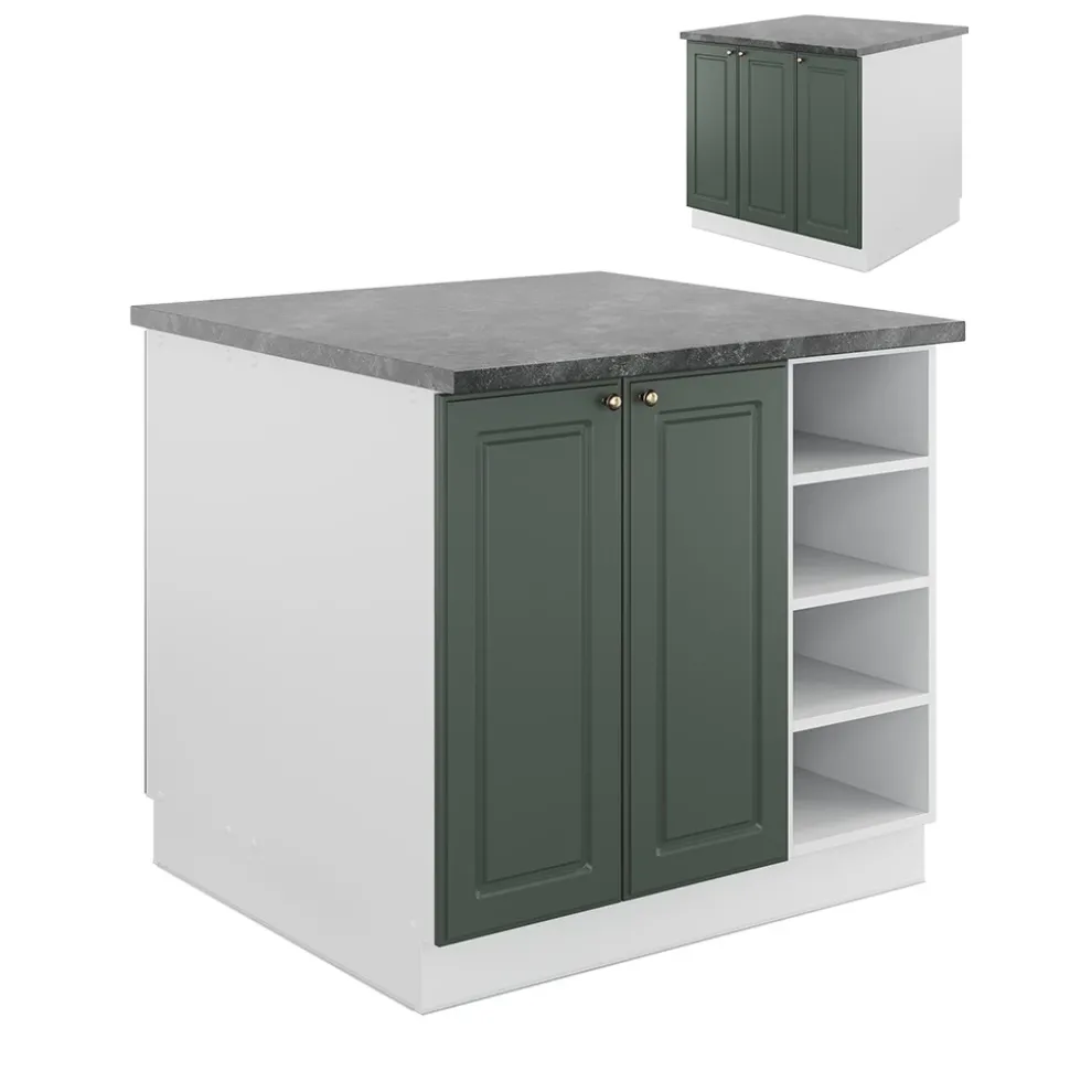 - MAßE: Der Insel-Küchenschrank hat eine Breite von 90 cm, eine Höhe von 82 cm und eine Tiefe von 82 cm. Alle detaillierten Größen sind auf den Fotos angegeben.