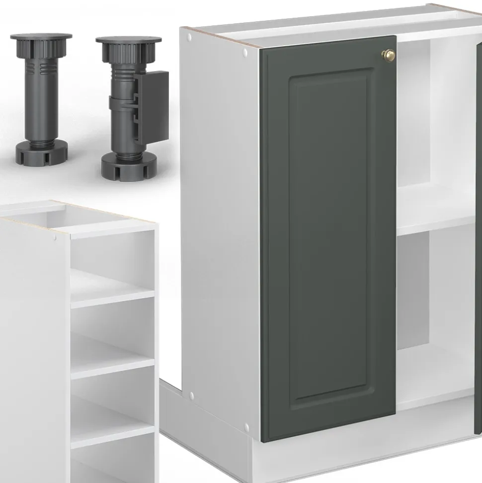- MATERIAL: Die freistehenden Küchenmöbel besteht aus pflegeleichter Spanplatte 16 mm, mit einer Melaminharzbeschichtung. Alle Fronten der Kücheneinheiten sind aus hochwertigem MDF hergestellt
