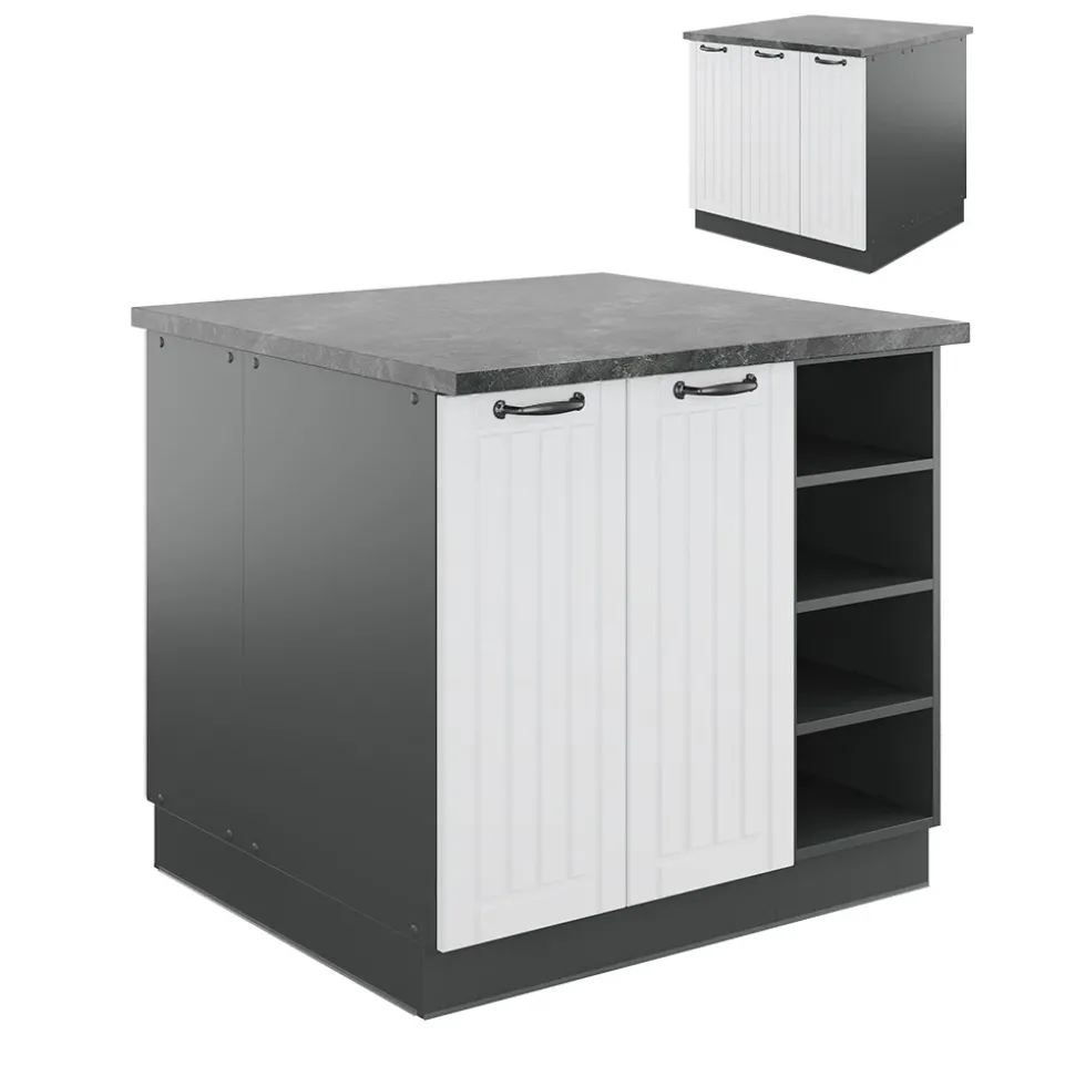 - MAßE: Der Insel-Küchenschrank hat eine Breite von 90 cm, eine Höhe von 82 cm und eine Tiefe von 82 cm. Alle detaillierten Größen sind auf den Fotos angegeben.