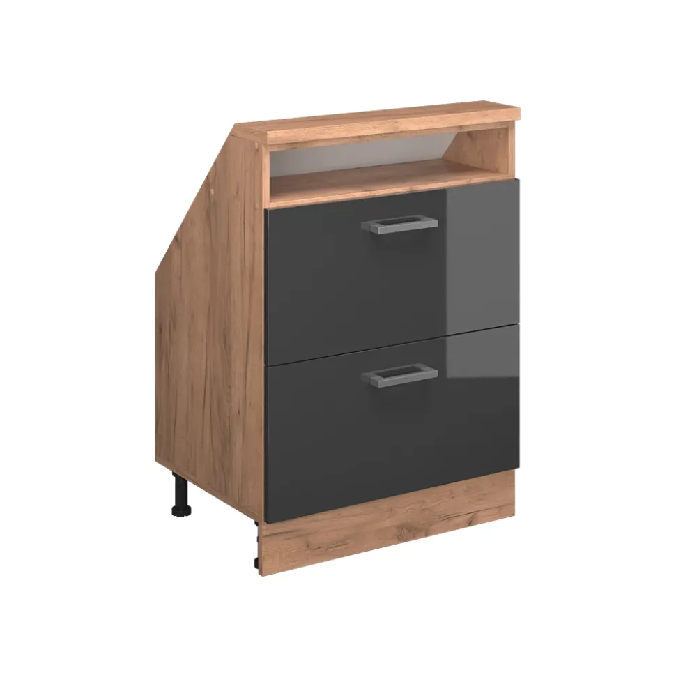 - Robuster Küchenschrank für Dachschrägen mit 2 Schubladen. Praktische Griffe und viel Stauraum machen ihn zu einer platzsparenden, langlebigen Lösung für Ihre Küche.