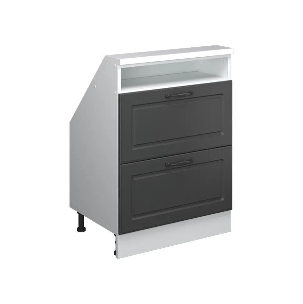 - Robuster Küchenschrank für Dachschrägen mit 2 Schubladen. Praktische Griffe und viel Stauraum machen ihn zu einer platzsparenden, langlebigen Lösung für Ihre Küche.