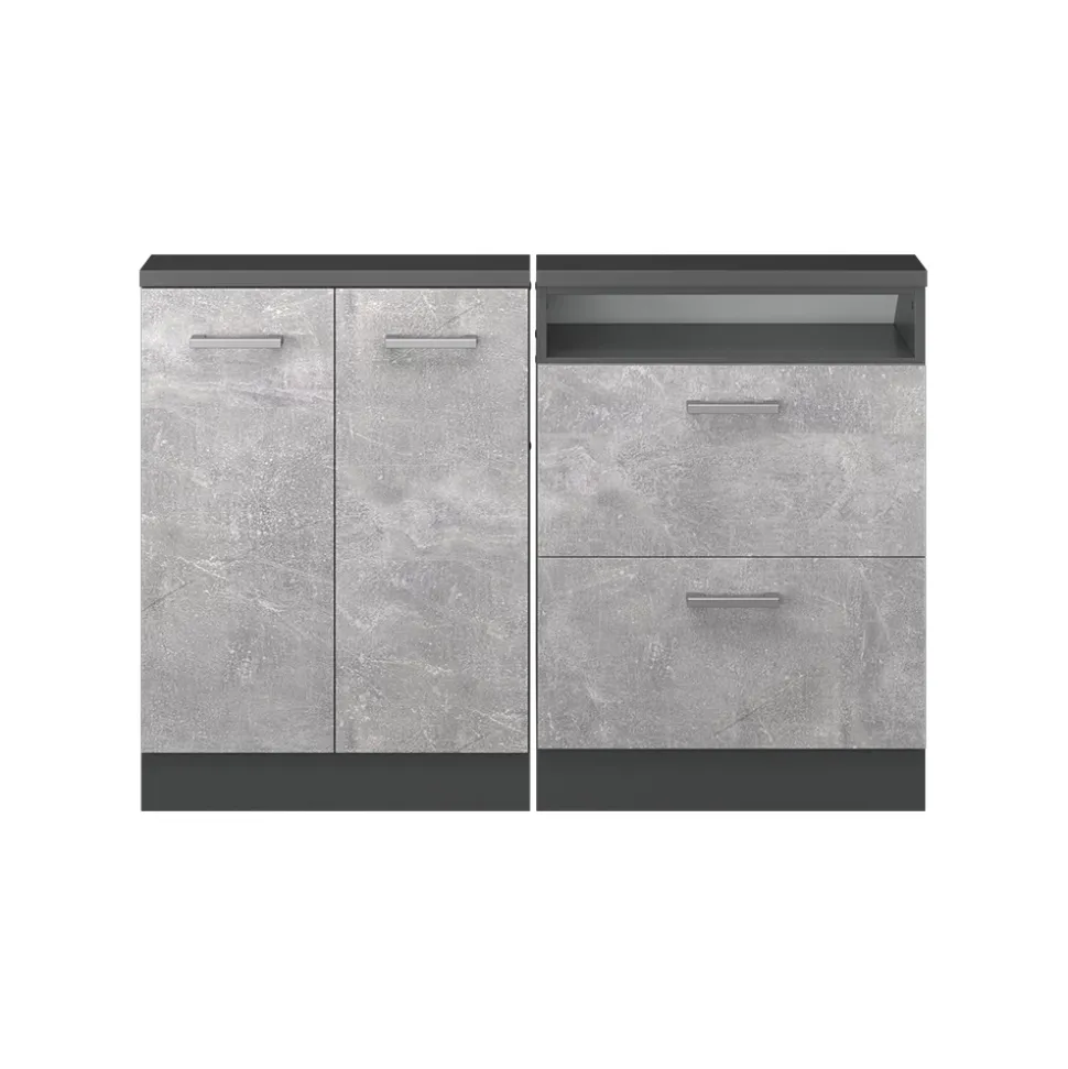 R-Line“ ist eine vielseitige Möbellinie mit Küchenzeilen, montagefertigen Komponenten und Schränken für den, Haushalts-, Wäsche- und Kreativbereich. Sie bietet eine breite Auswahl an Farben und Größen, die individuelle Lösungen für jeden Raum ermöglichen. Die Unterschränke sind mit verstellbaren Füßen ausgestattet, so dass sie einzeln oder als komplettes Set konfiguriert werden können, um den unterschiedlichen Bedürfnissen gerecht zu werden und die Funktionalität in verschiedenen Umgebungen zu verbessern.