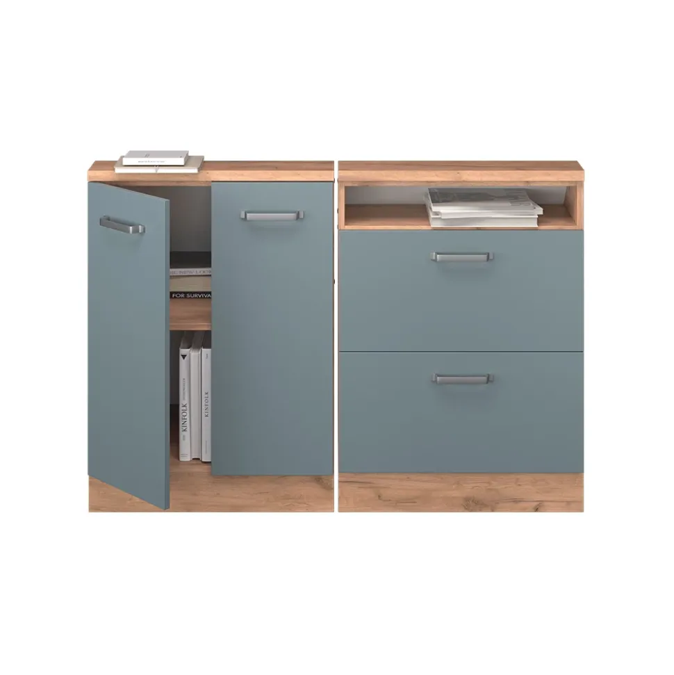 R-Line“ ist eine vielseitige Möbellinie mit Küchenzeilen, montagefertigen Komponenten und Schränken für den, Haushalts-, Wäsche- und Kreativbereich. Sie bietet eine breite Auswahl an Farben und Größen, die individuelle Lösungen für jeden Raum ermöglichen. Die Unterschränke sind mit verstellbaren Füßen ausgestattet, so dass sie einzeln oder als komplettes Set konfiguriert werden können, um den unterschiedlichen Bedürfnissen gerecht zu werden und die Funktionalität in verschiedenen Umgebungen zu verbessern.