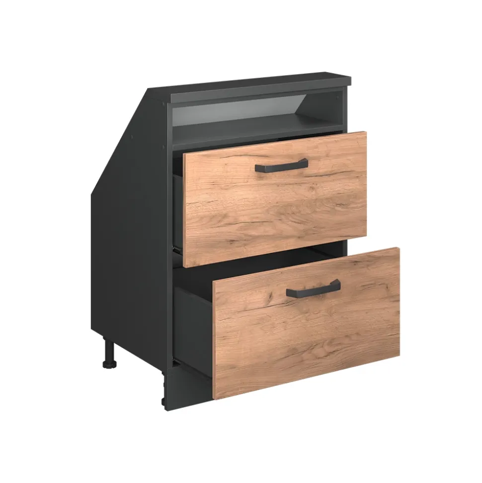 - Robuster Küchenschrank für Dachschrägen mit 2 Schubladen. Praktische Griffe und viel Stauraum machen ihn zu einer platzsparenden, langlebigen Lösung für Ihre Küche.