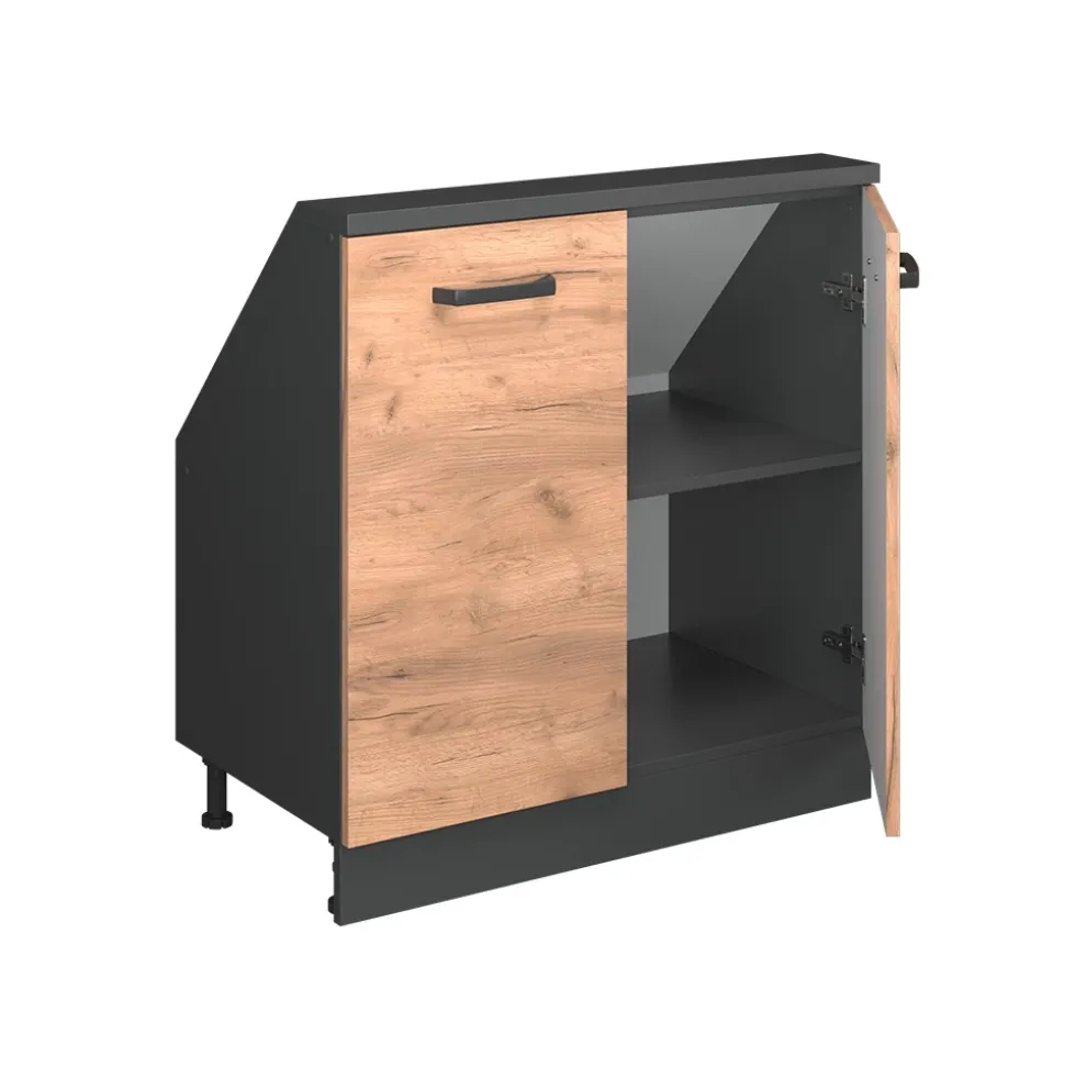 - Robuster Küchenschrank für Dachschrägen mit 2 Türen. Praktische Griffe und viel Stauraum machen ihn zu einer platzsparenden, langlebigen Lösung für Ihre Küche.