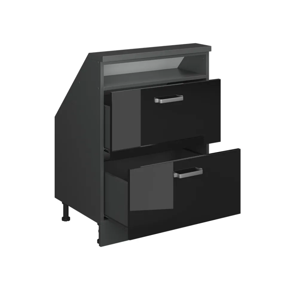 - Robuster Küchenschrank für Dachschrägen mit 2 Schubladen. Praktische Griffe und viel Stauraum machen ihn zu einer platzsparenden, langlebigen Lösung für Ihre Küche.