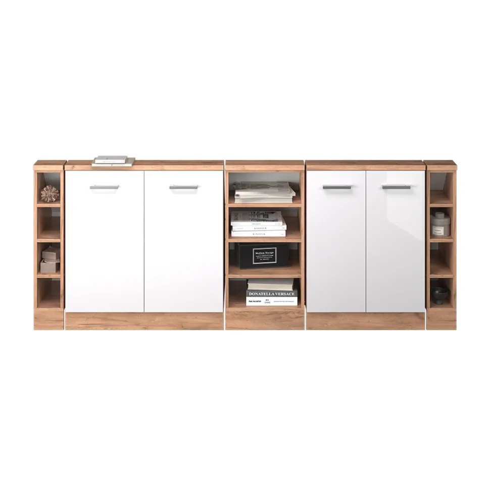 Weiß Hochglanz/Goldkraft Eiche