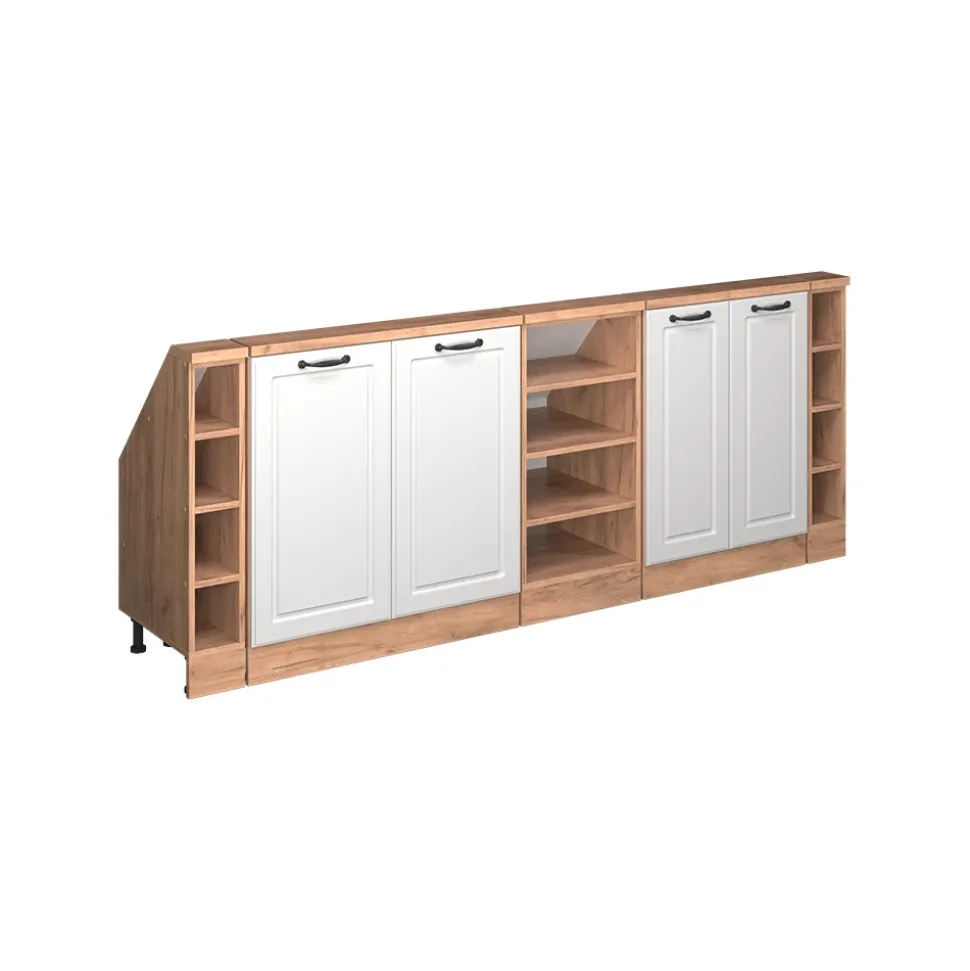 Verwandeln Sie ungenutzten Platz unter der Dachschräge in funktionalen und stilvollen Stauraum – mit dem R-Line Küchenschrank für Dachschrägen. Das speziell konzipierte Möbel fügt sich passgenau unter die Schräge und bietet reichlich Stauraum für alles, was Sie in der Küche verstauen möchten. Die der Dachneigung angepasste Oberseite sorgt für eine moderne Optik, höhenverstellbare, verdeckt eingelassene Füße runden das nahtlose Erscheinungsbild ab und gewährleisten sicheren Stand. Bringen Sie Ordnung in Ihre Küche und gewinnen Sie auf clevere Weise zusätzlichen Stauraum – mit dem R-Line Dachschrägenschrank.