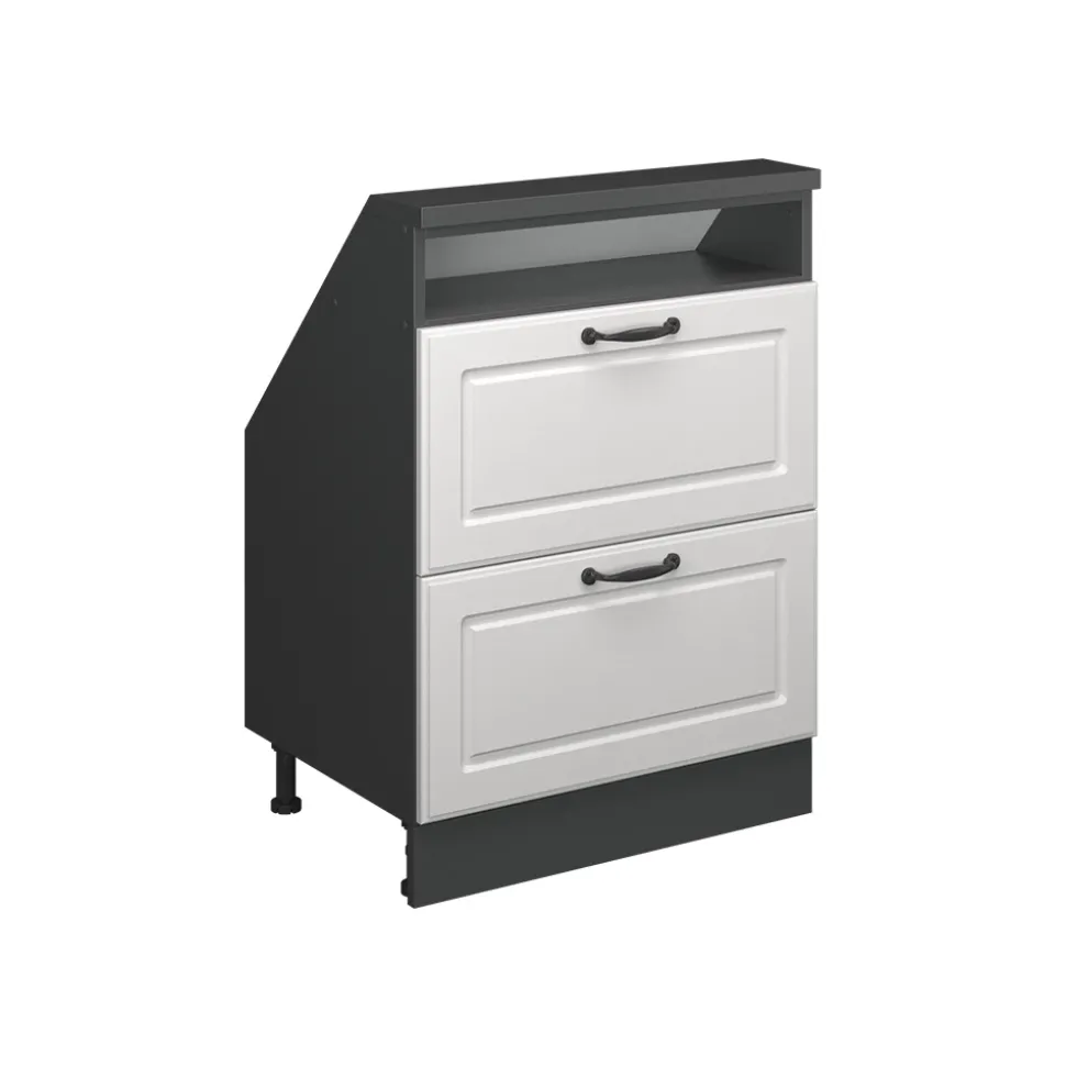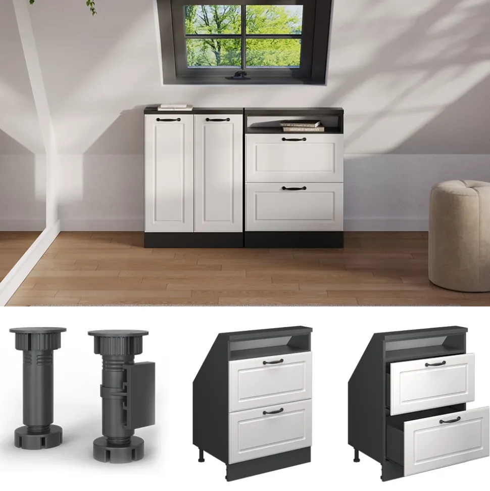 - Robuster Küchenschrank für Dachschrägen mit 2 Schubladen. Praktische Griffe und viel Stauraum machen ihn zu einer platzsparenden, langlebigen Lösung für Ihre Küche.