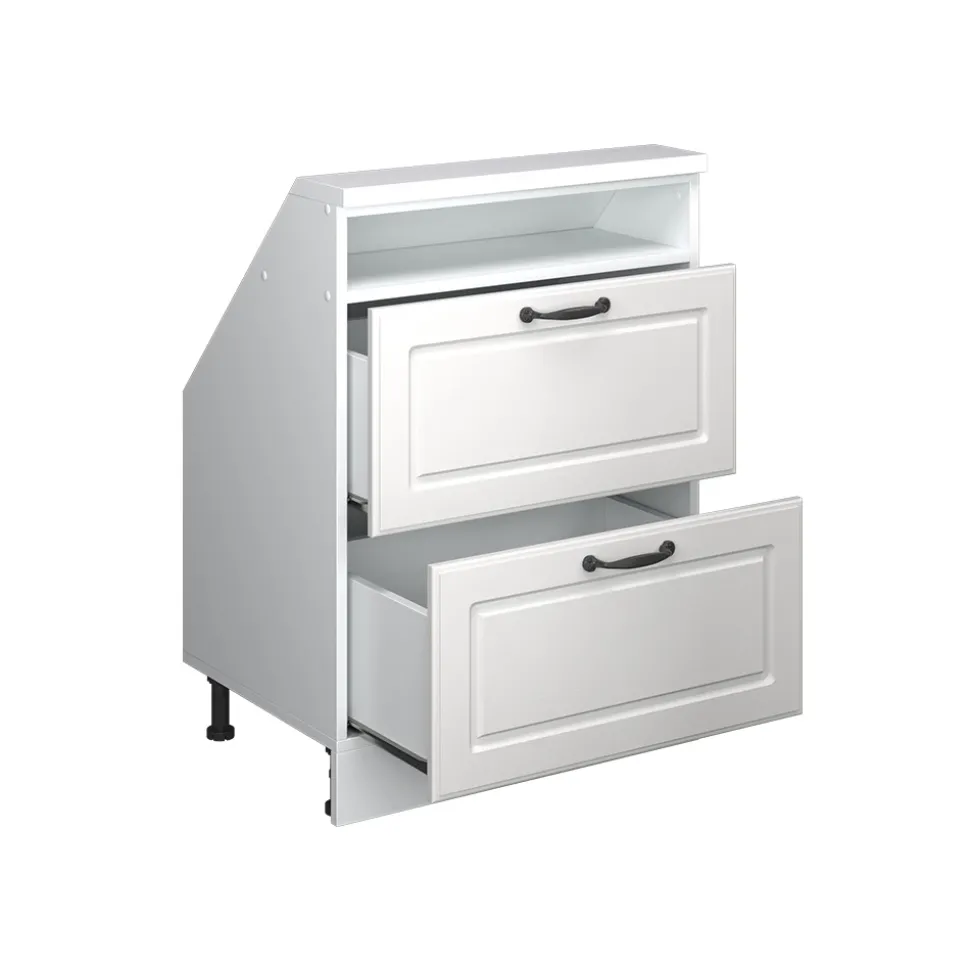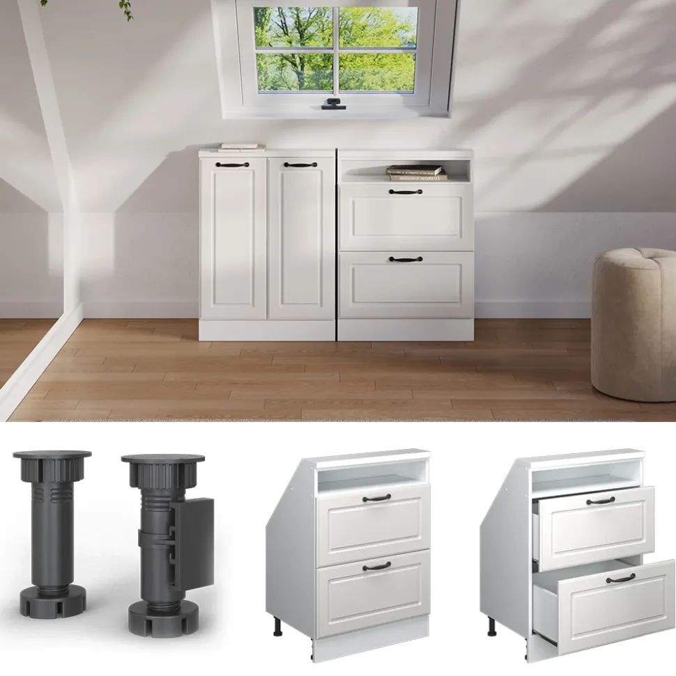 - Robuster Küchenschrank für Dachschrägen mit 2 Schubladen. Praktische Griffe und viel Stauraum machen ihn zu einer platzsparenden, langlebigen Lösung für Ihre Küche.
