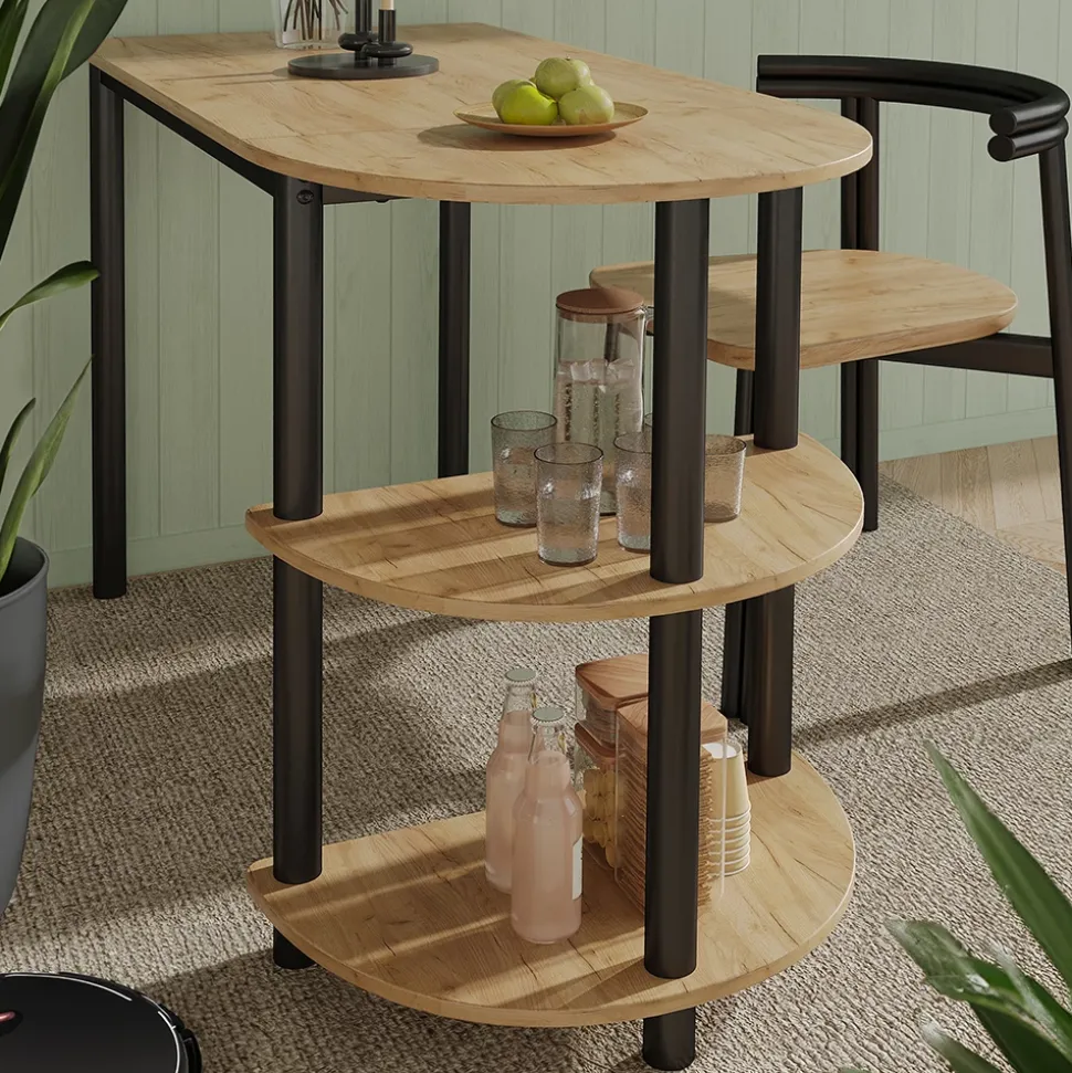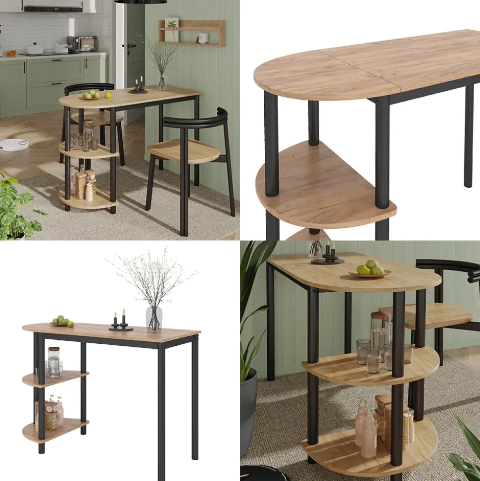 - MAßE: Der Esstisch für die Küche mit offenen Ablagen hat eine Tiefe von 50 cm, eine Breite von 110 cm und eine Höhe von 75,5 cm.