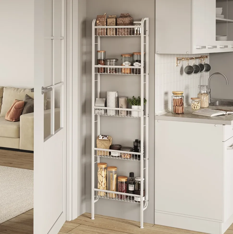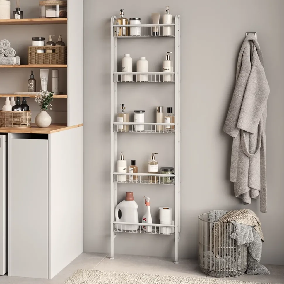 - Das schmales Mehrzweckregal ist ideal als Nischenregal im Bad, Küche oder Abstellraum um Ordnung zu schaffen und ungenutzte Lücken, zum Beispiel hinter der Tür effizient auszunutzen.