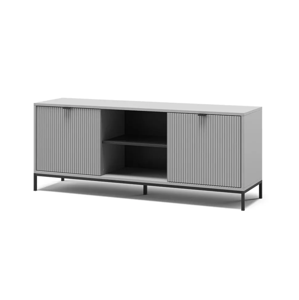 - MATERIAL: Das TV-Board besteht aus pflegeleichter, melaminharzbeschichteter 16 mm Spanplatte. Die Fronten sind aus MDF gefertigt. Die Griffe und Füße aus Metall.