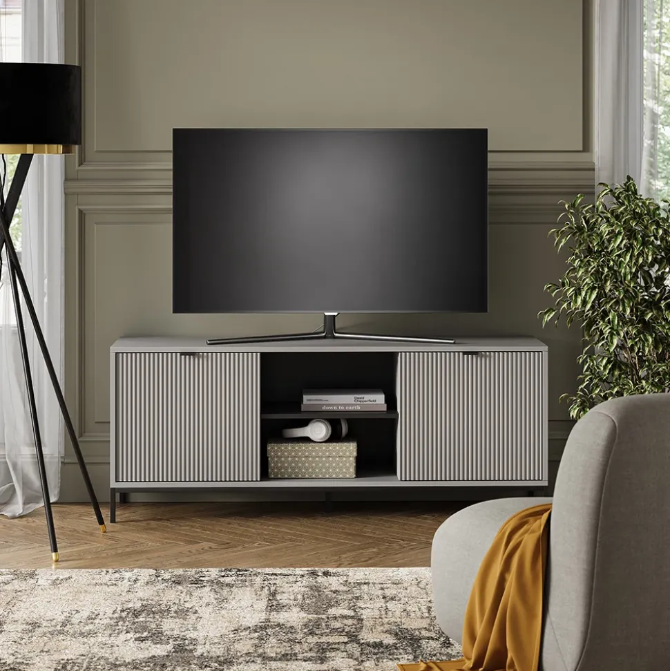 - Das TV-Board besticht durch hochwertige Verarbeitung und bietet viel Stauraum für Ihre Geräte. Der platzsparende und moderne Fernsehtisch ist die ideale Ergänzung für Ihr Wohnzimmer.