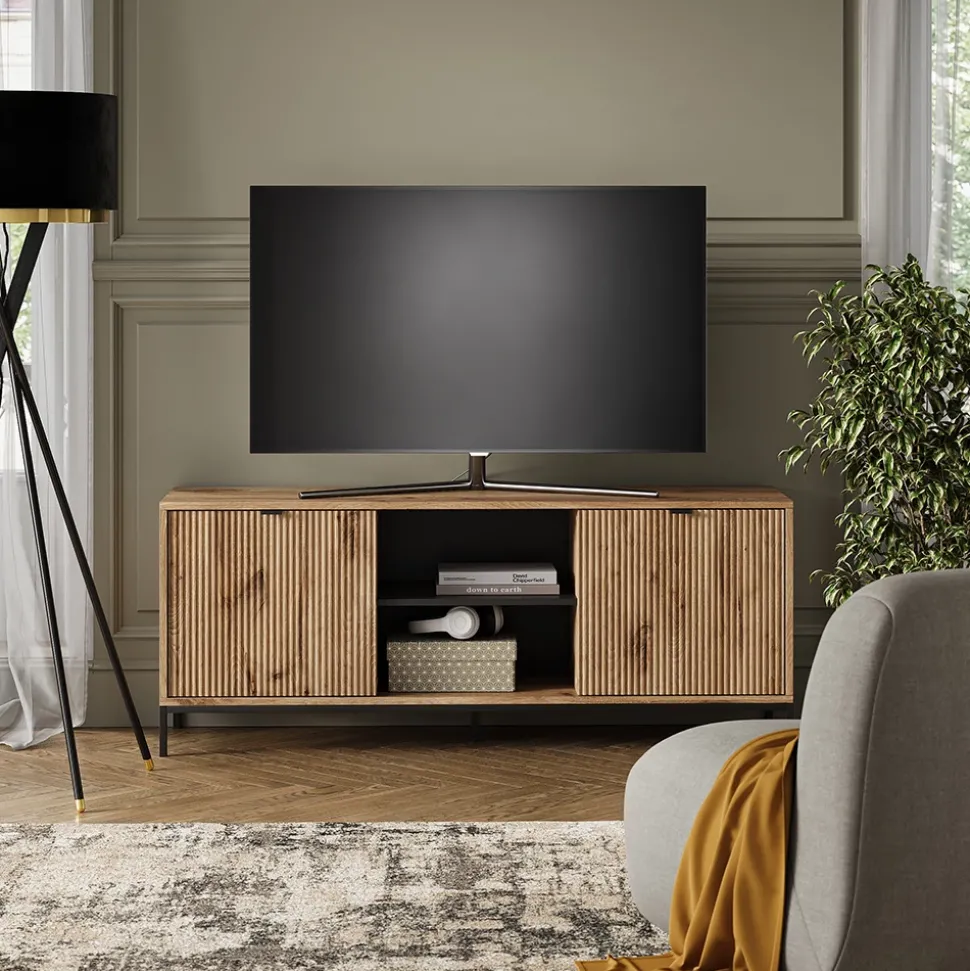 - Der Fernsehschrank Eliza ist eine gute Entscheidung für jeden, der ein stilvolles Aussehen und eine universelle Passform für jede Wohnung sucht.