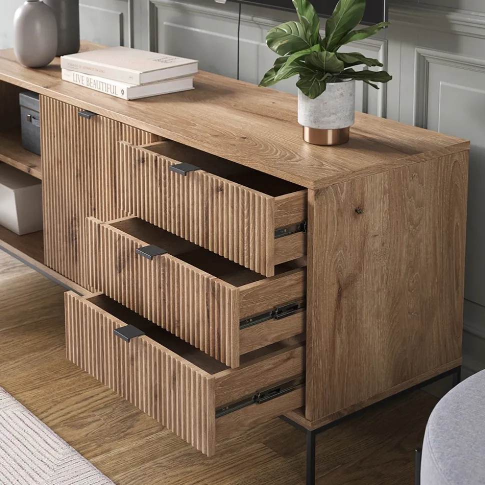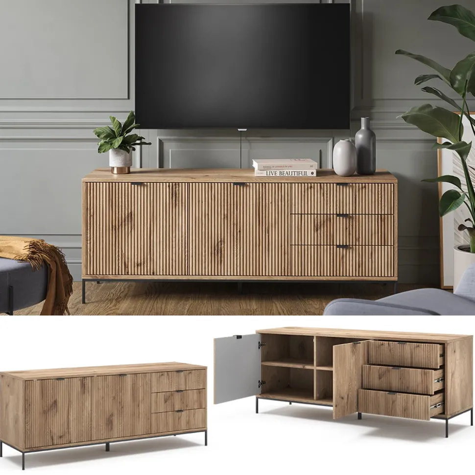 - MATERIAL: Das TV-Board besteht aus pflegeleichter, melaminharzbeschichteter 16 mm Spanplatte.