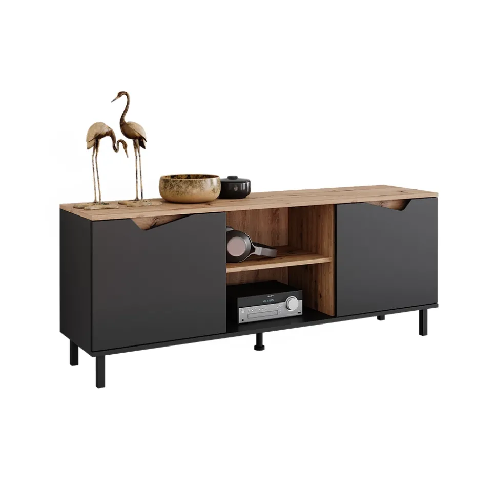 - Mit zwei offenen Fächern und zwei Türen hält der Fernsehtisch alles für Geräte und Zubehör gut organisiert bereit.