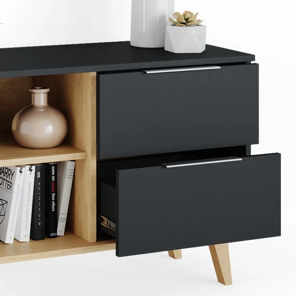- MATERIAL: Das TV-Board besteht aus pflegeleichter Spanplatte 16 mm, mit einer Melaminharzbeschichtung