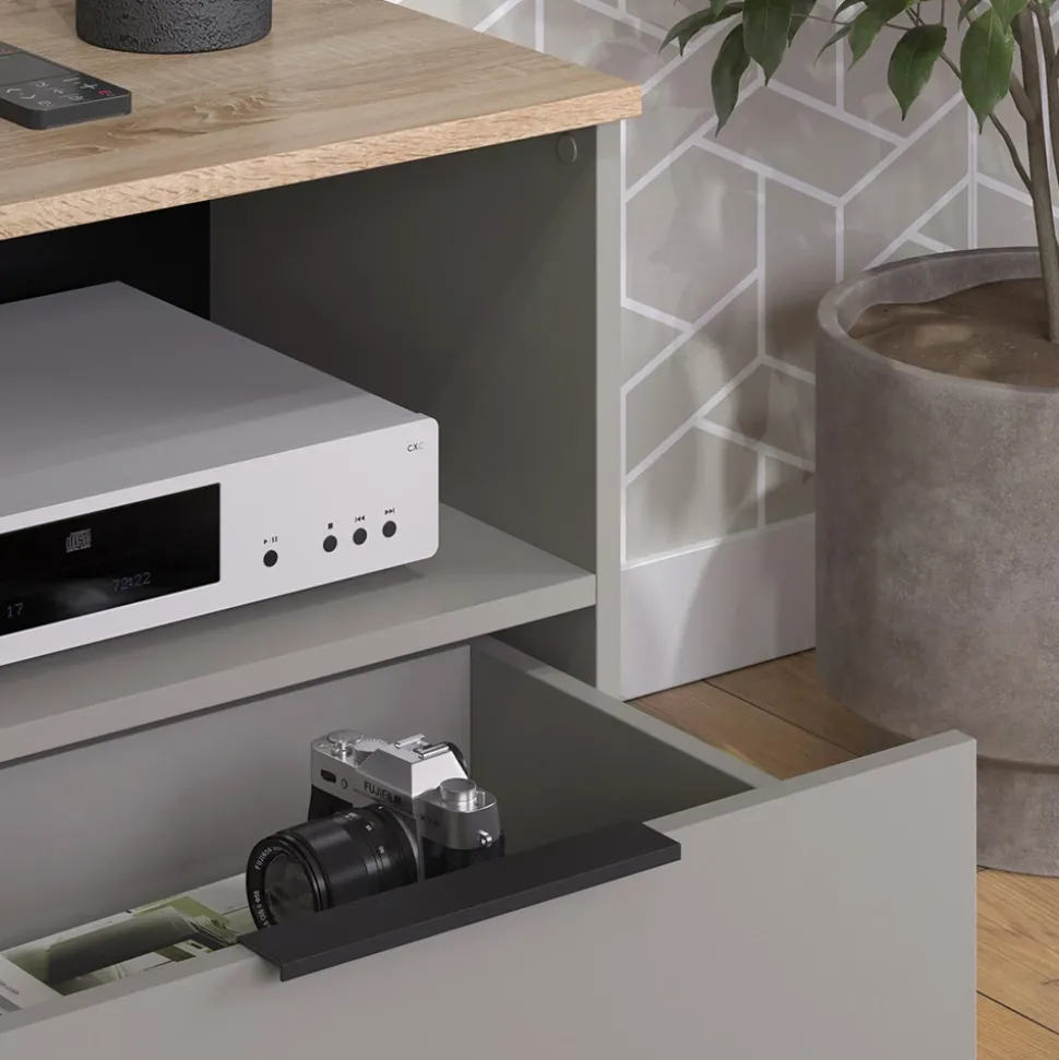 - MAßE: Der TV-Schrank verfügt über eine Schublade; die detaillierten Maße sind auf den Fotos angegeben.
