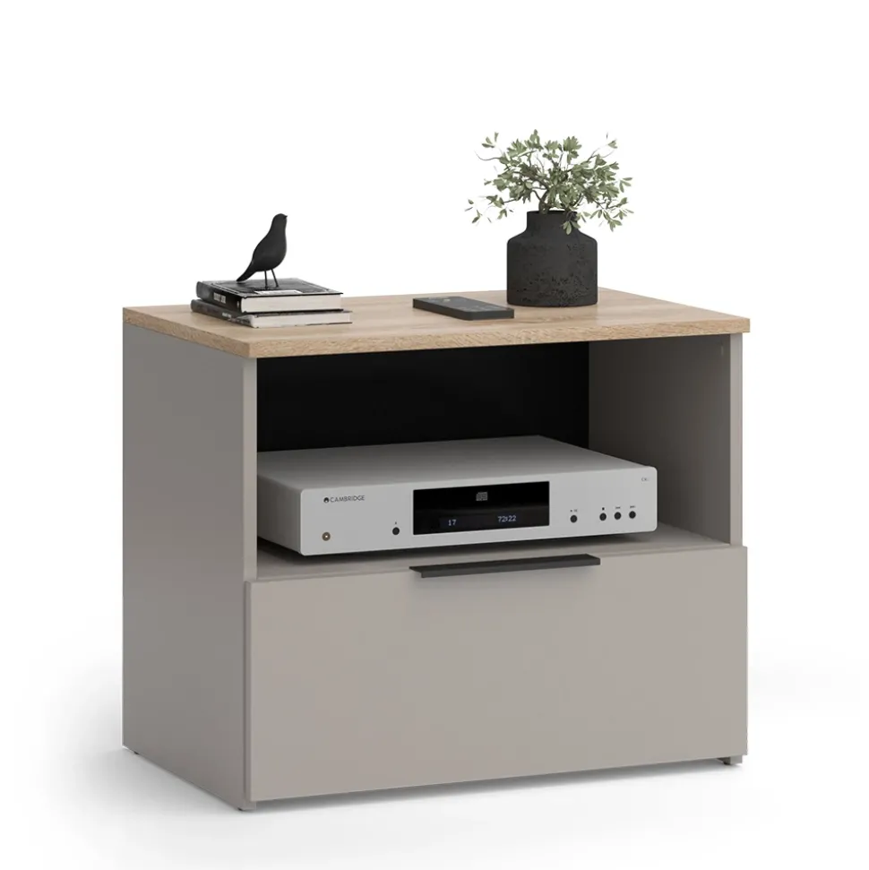 - MATERIAL: Das Lowboard besteht aus pflegeleichter Spanplatte (16 mm) mit Melaminharzbeschichtung.