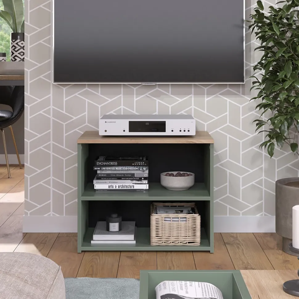 - MATERIAL: Das Lowboard besteht aus pflegeleichter Spanplatte (16 mm) mit Melaminharzbeschichtung.