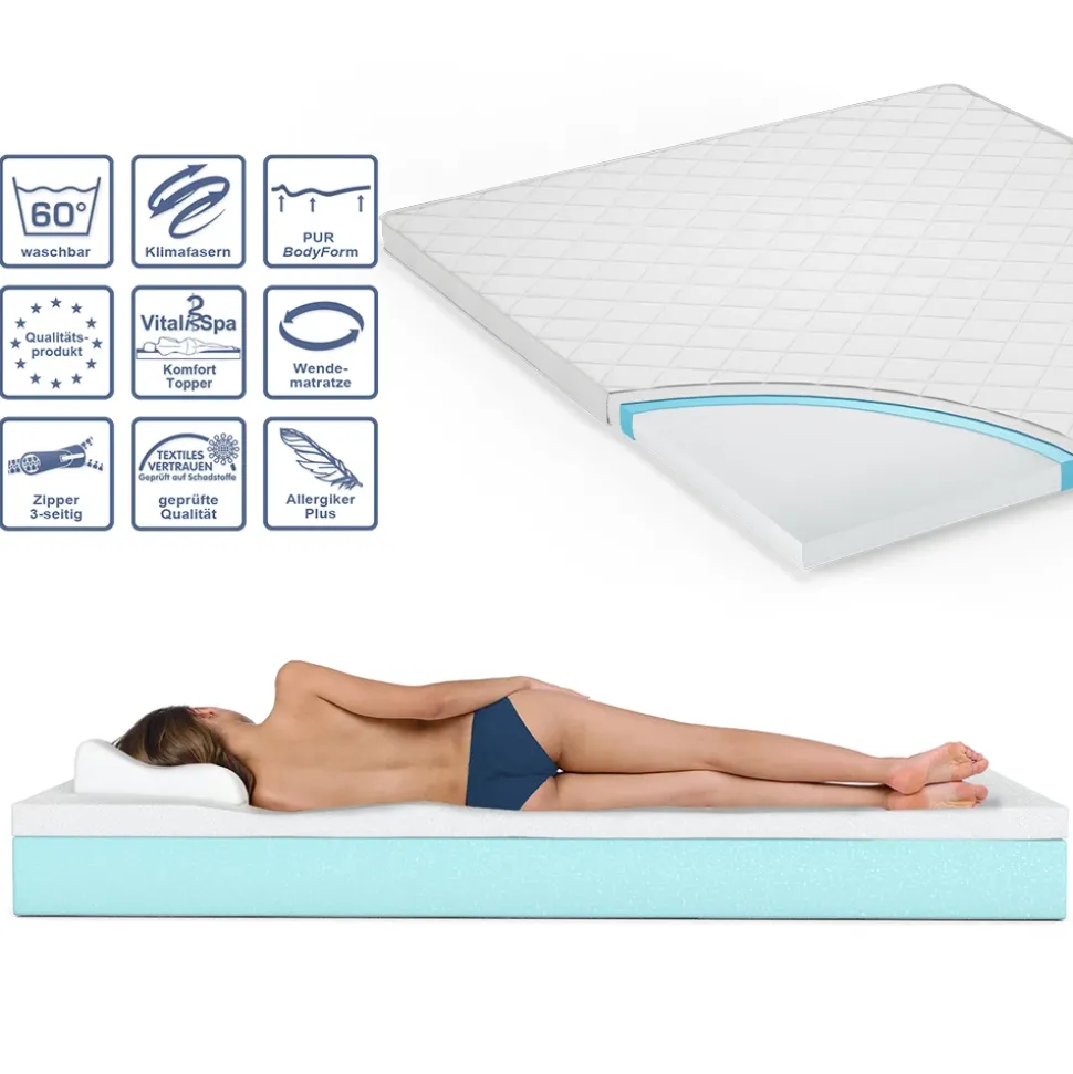 - MAßE: Der Topper für Matratzen hat eine Breite von 160 cm, eine Höhe von 6 cm und eine Tiefe von 200 cm. Alle detaillierten Größen sind auf den Fotos angegeben.